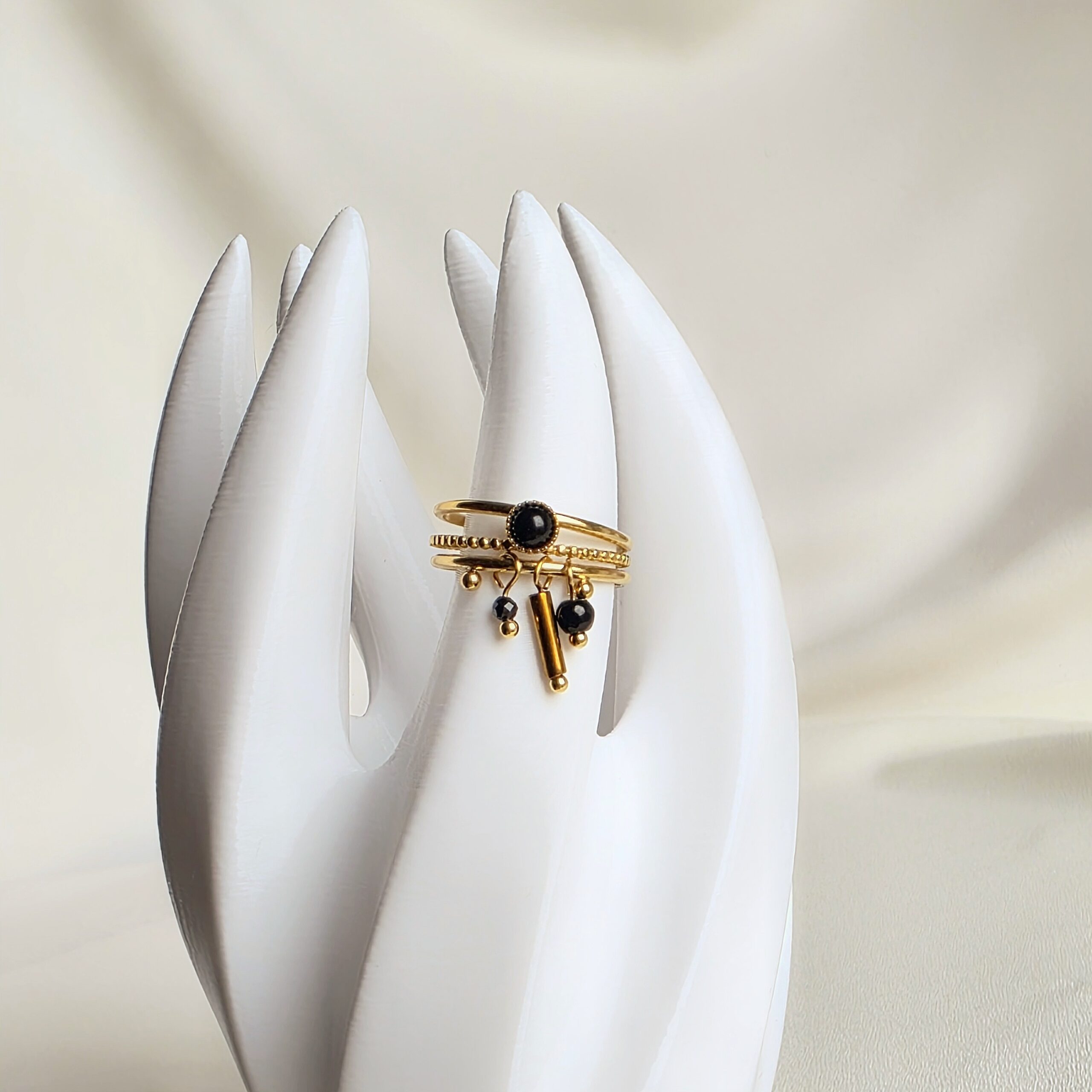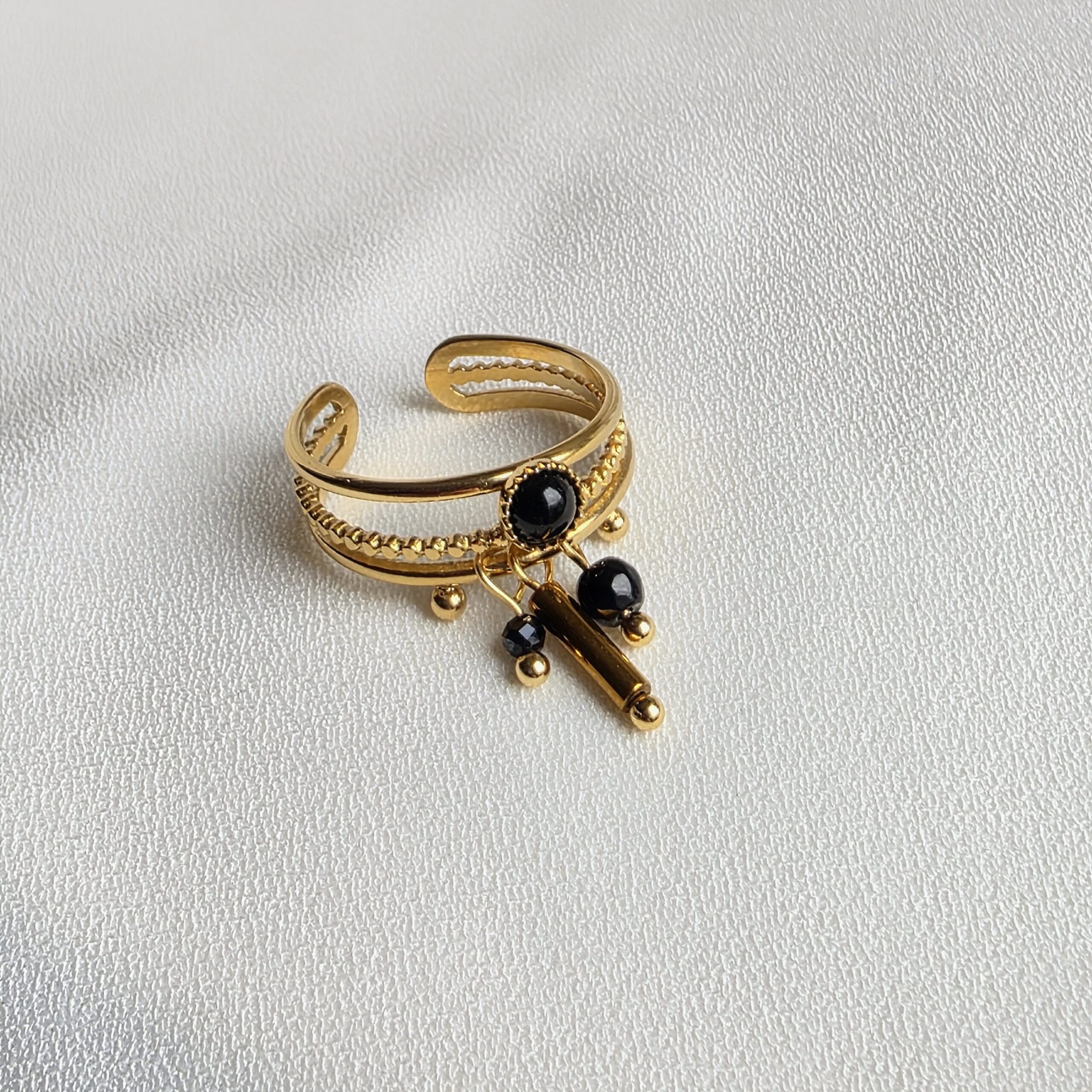 Cette bague est ornée des breloques délicates qui ajoutent une touche d’originalité et de mouvement.