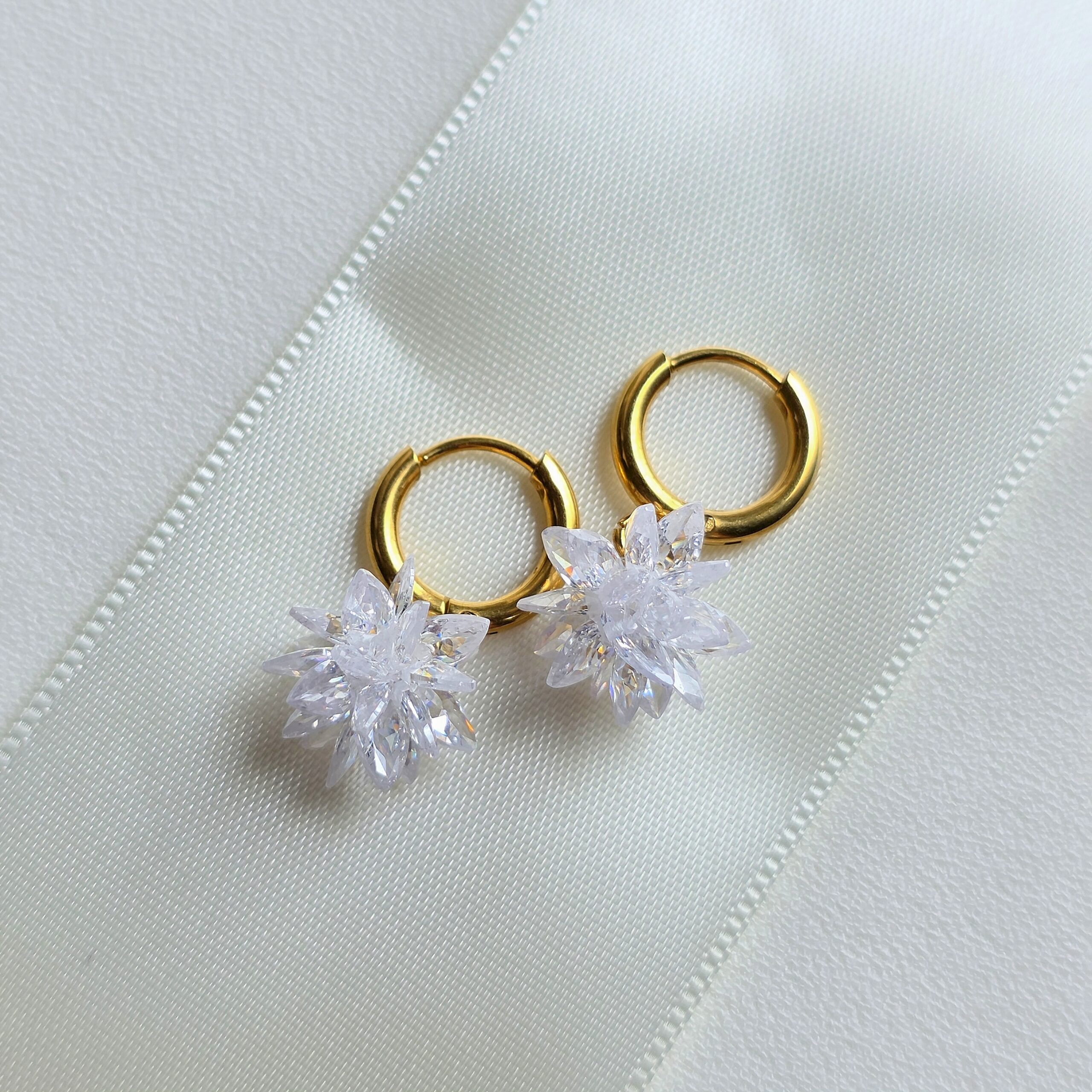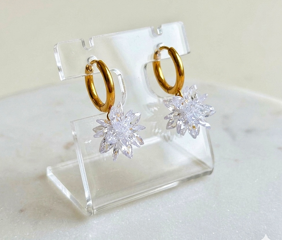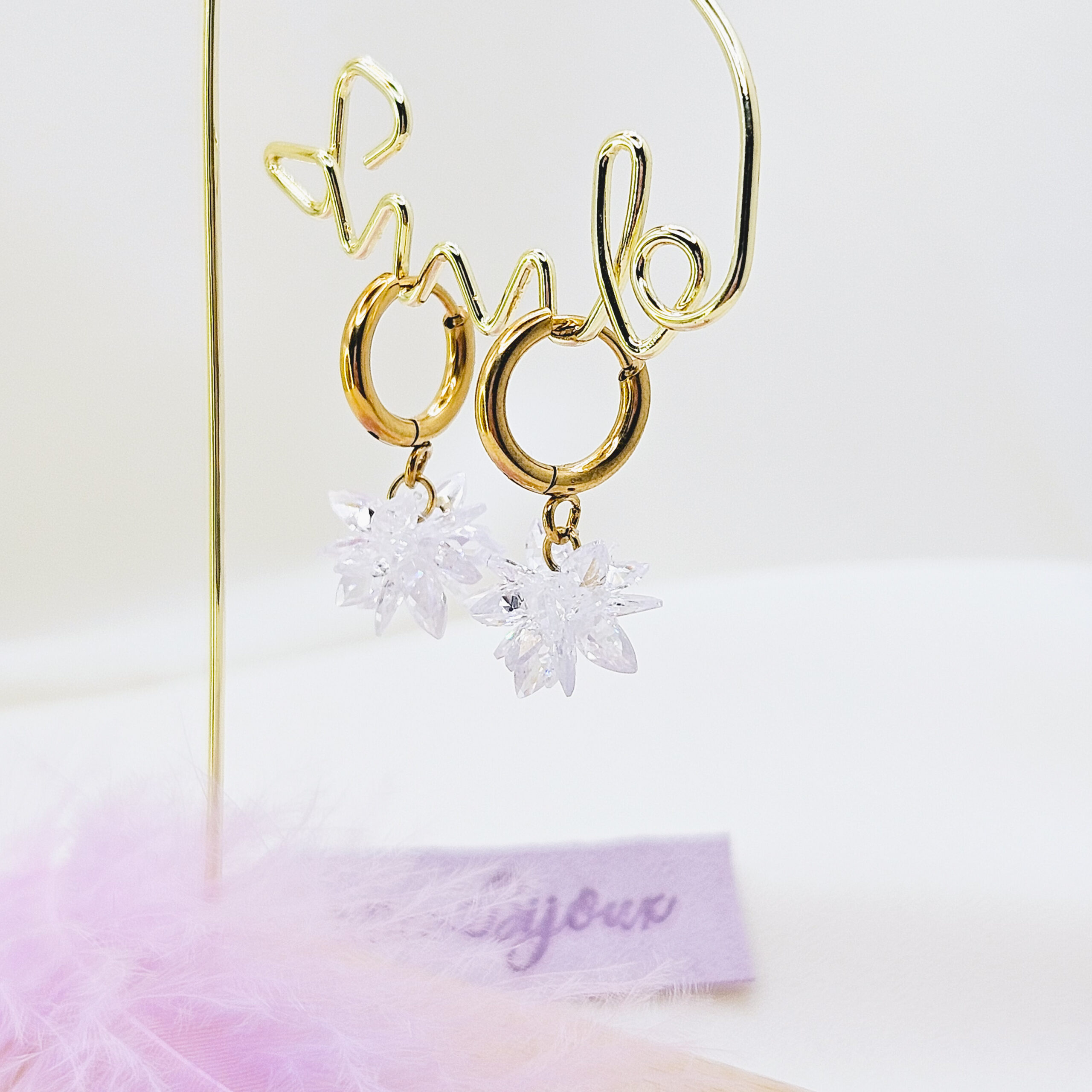 Boucles d’oreille en acier doré inoxydable avec cristaux