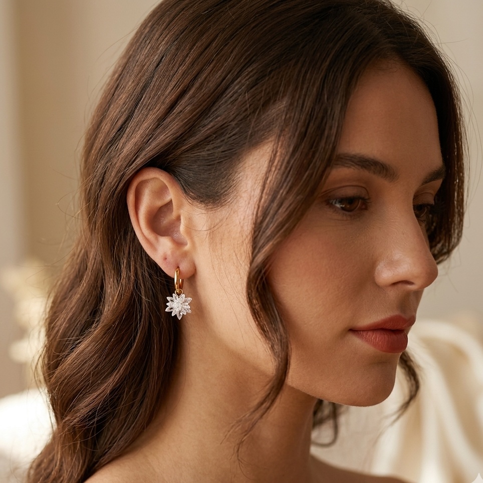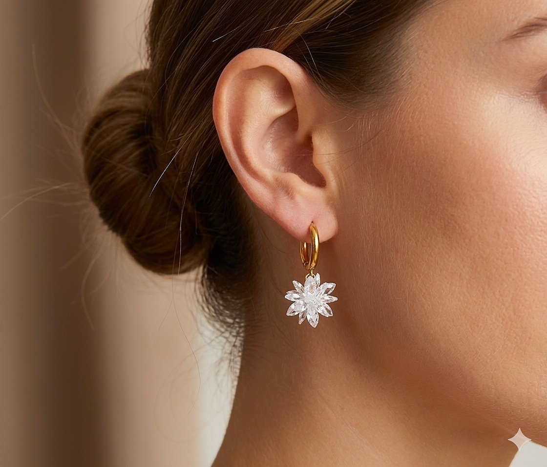 Les boucles d’oreilles en forme d’étoile.