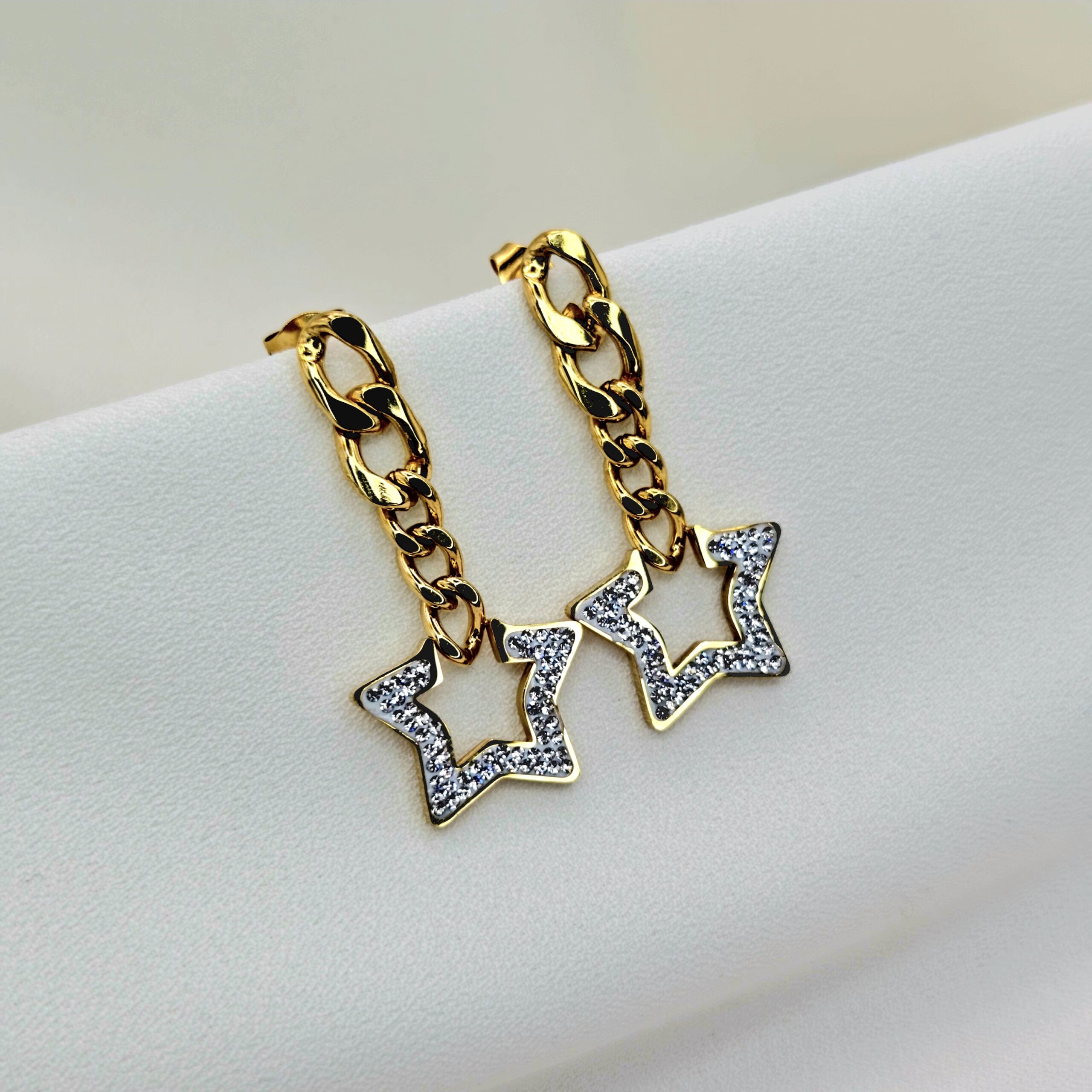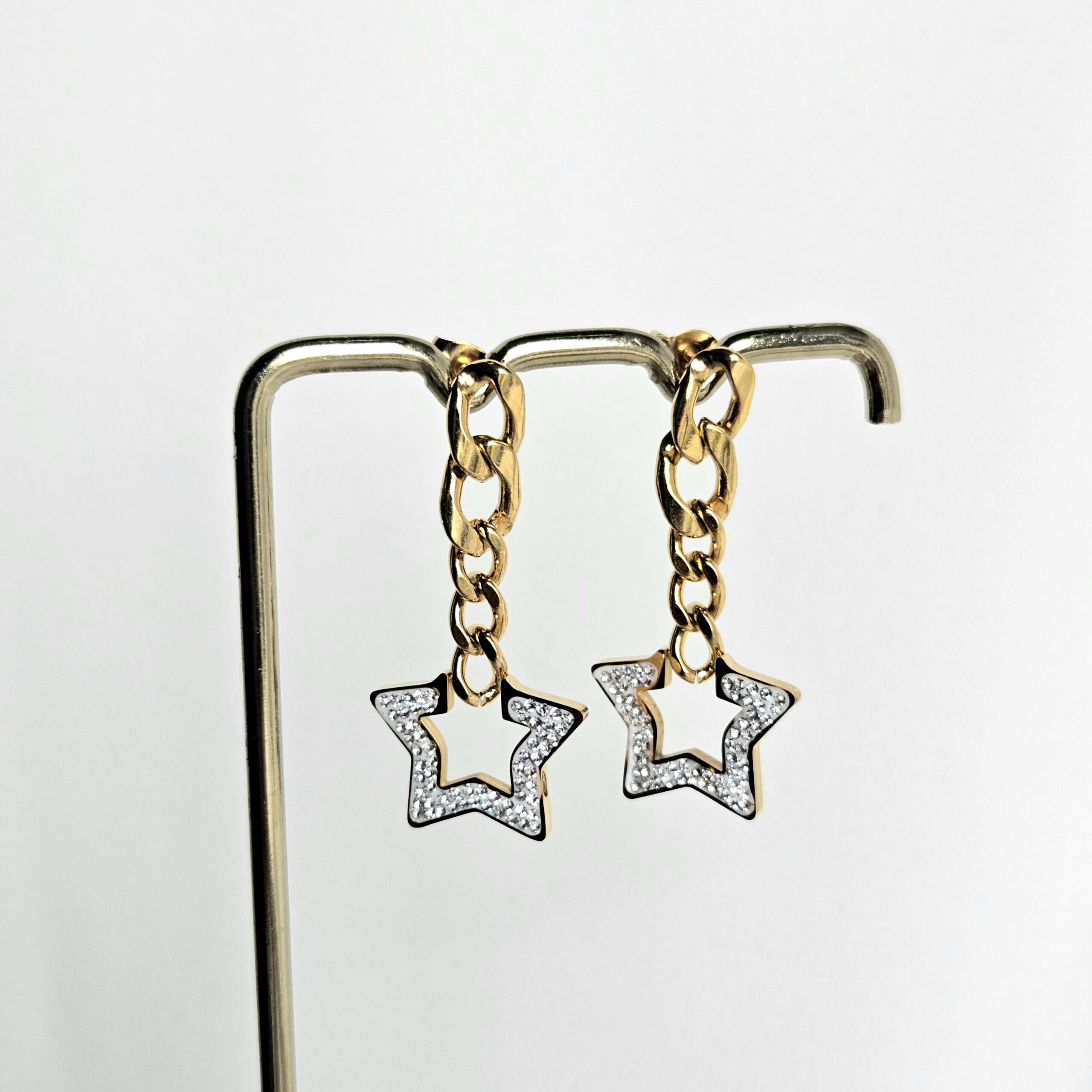 Boucle d’oreille en acier doré inoxydable avec zirconiums