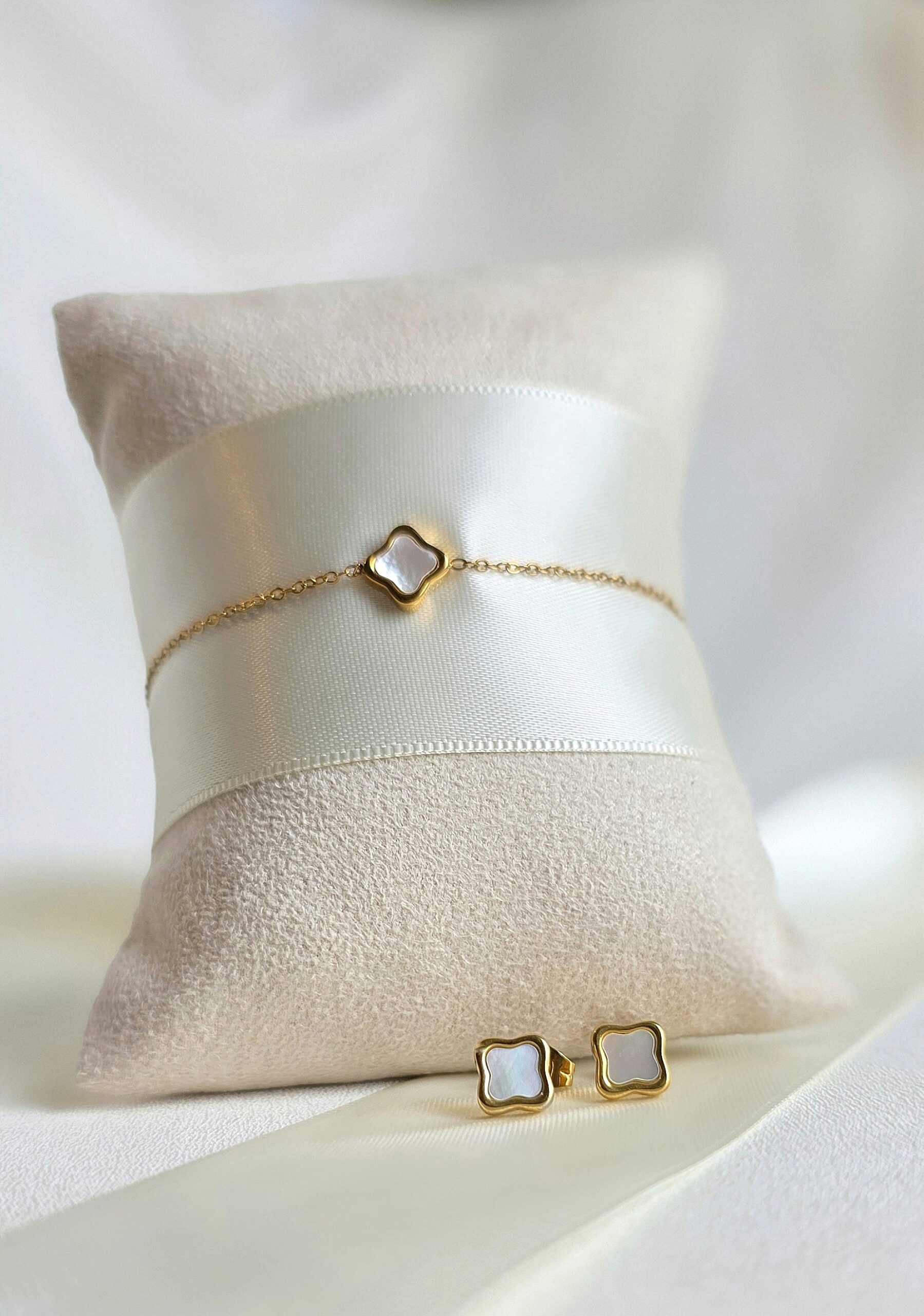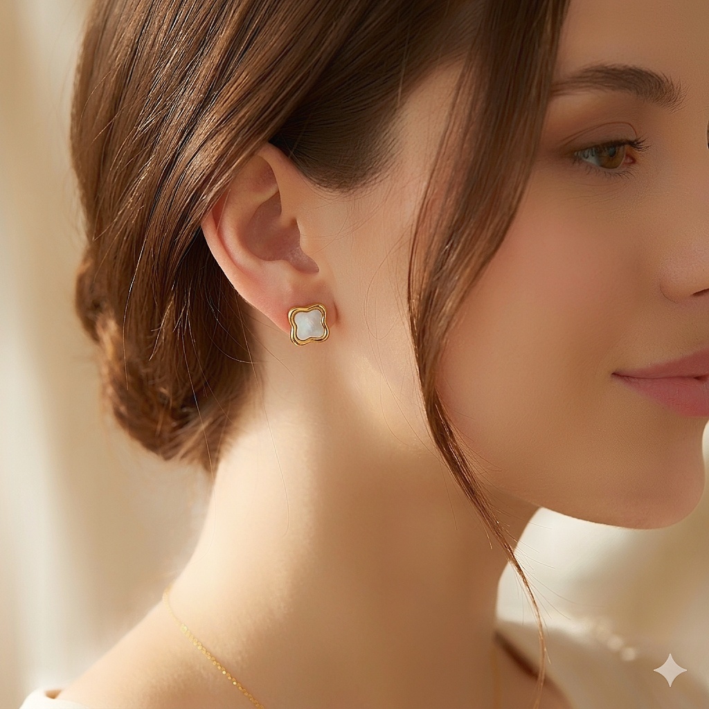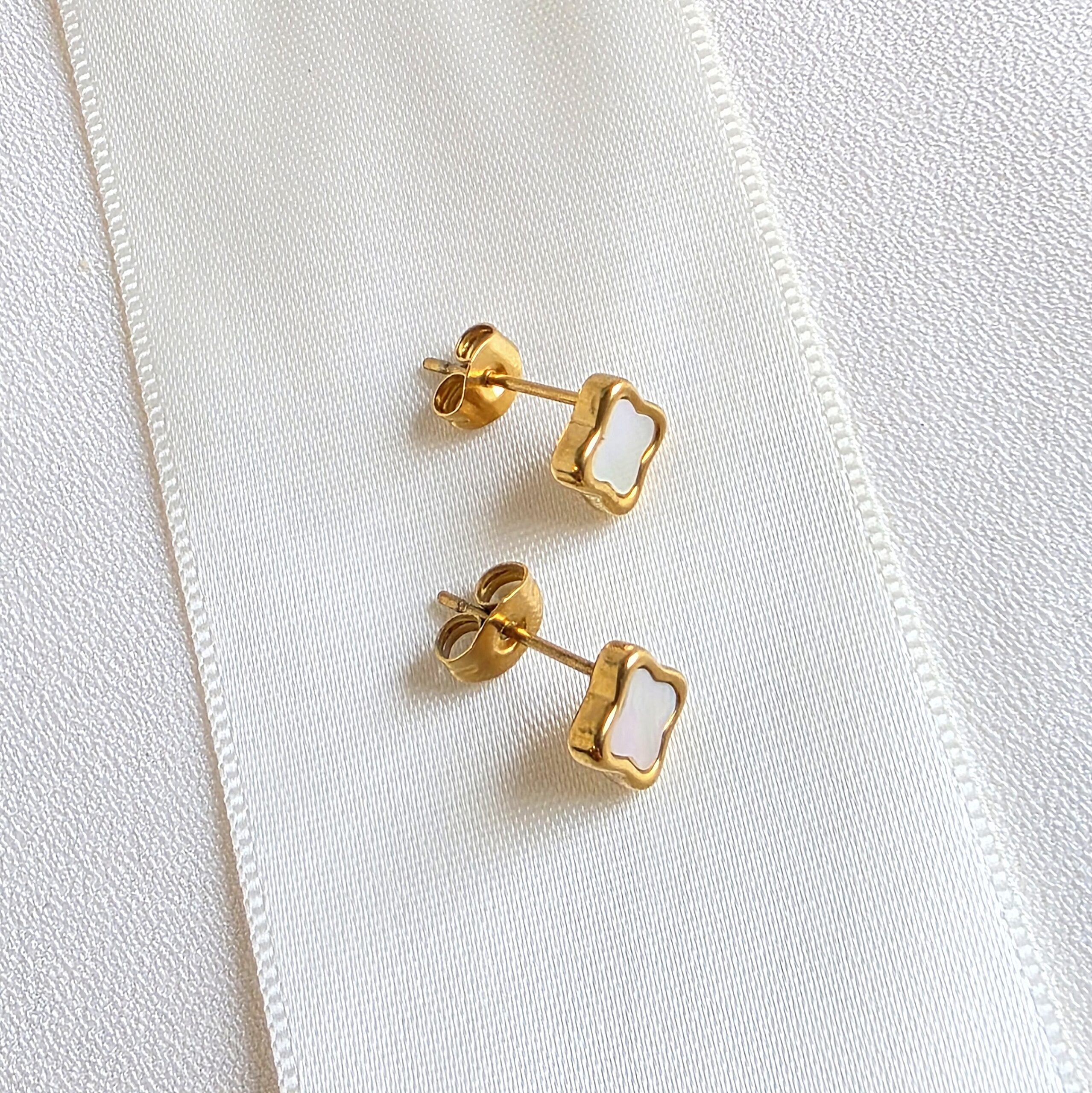 Boucles d’oreilles en acier inoxydable avec trèfle nacre blanche irisée