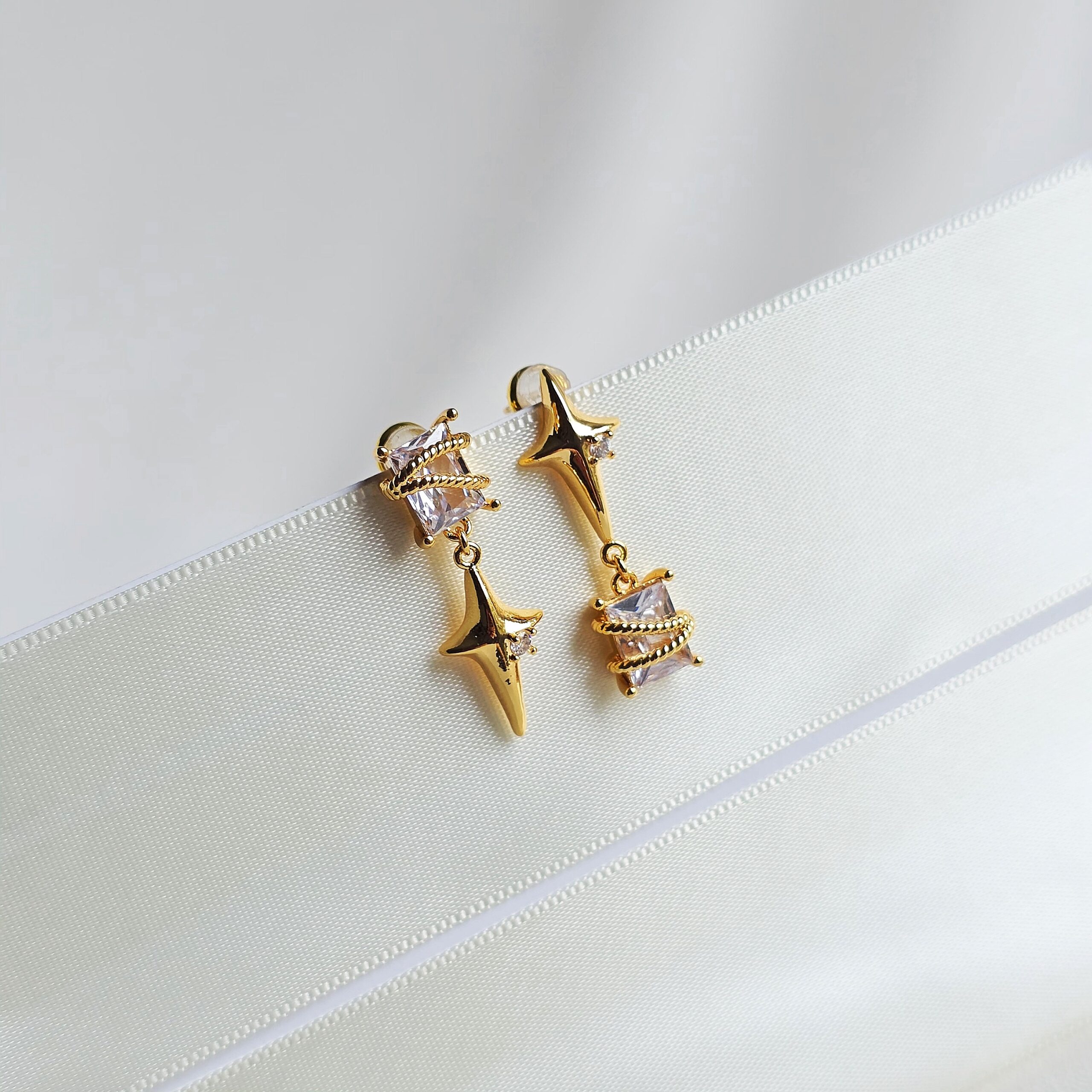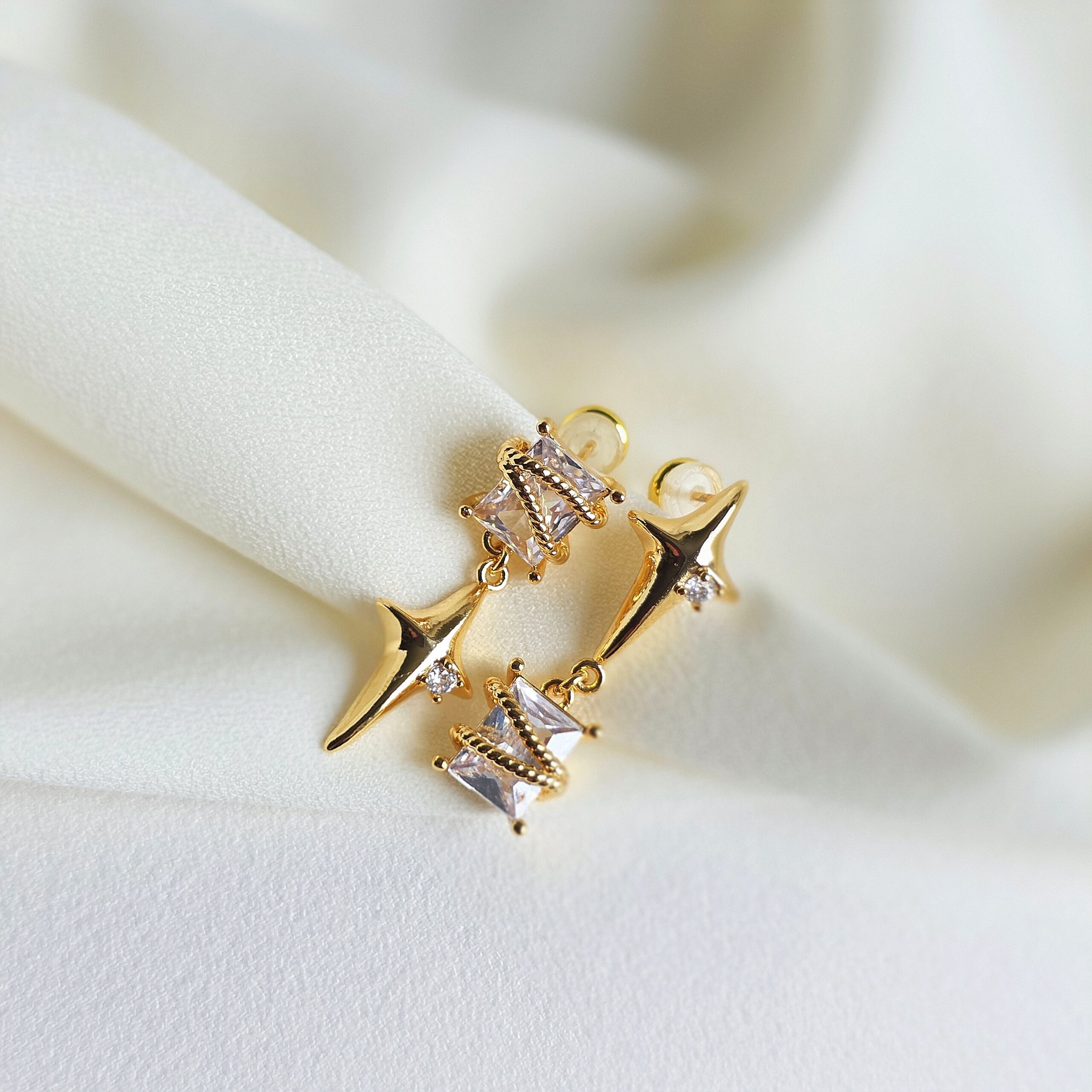 Boucles d’oreille en laiton plaqué or 18K doré avec zirconium