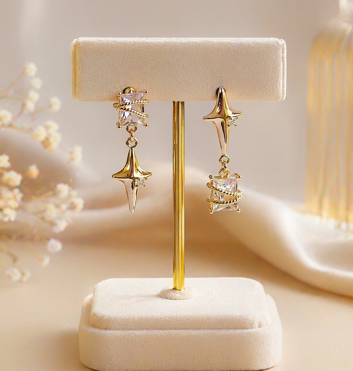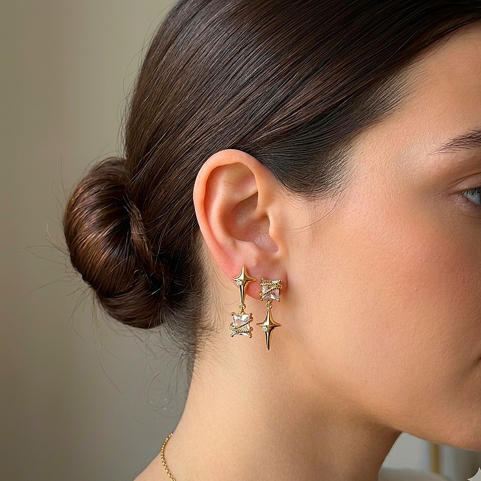 Les boucles d’oreilles asymétriques pour un look contemporain et poétique.