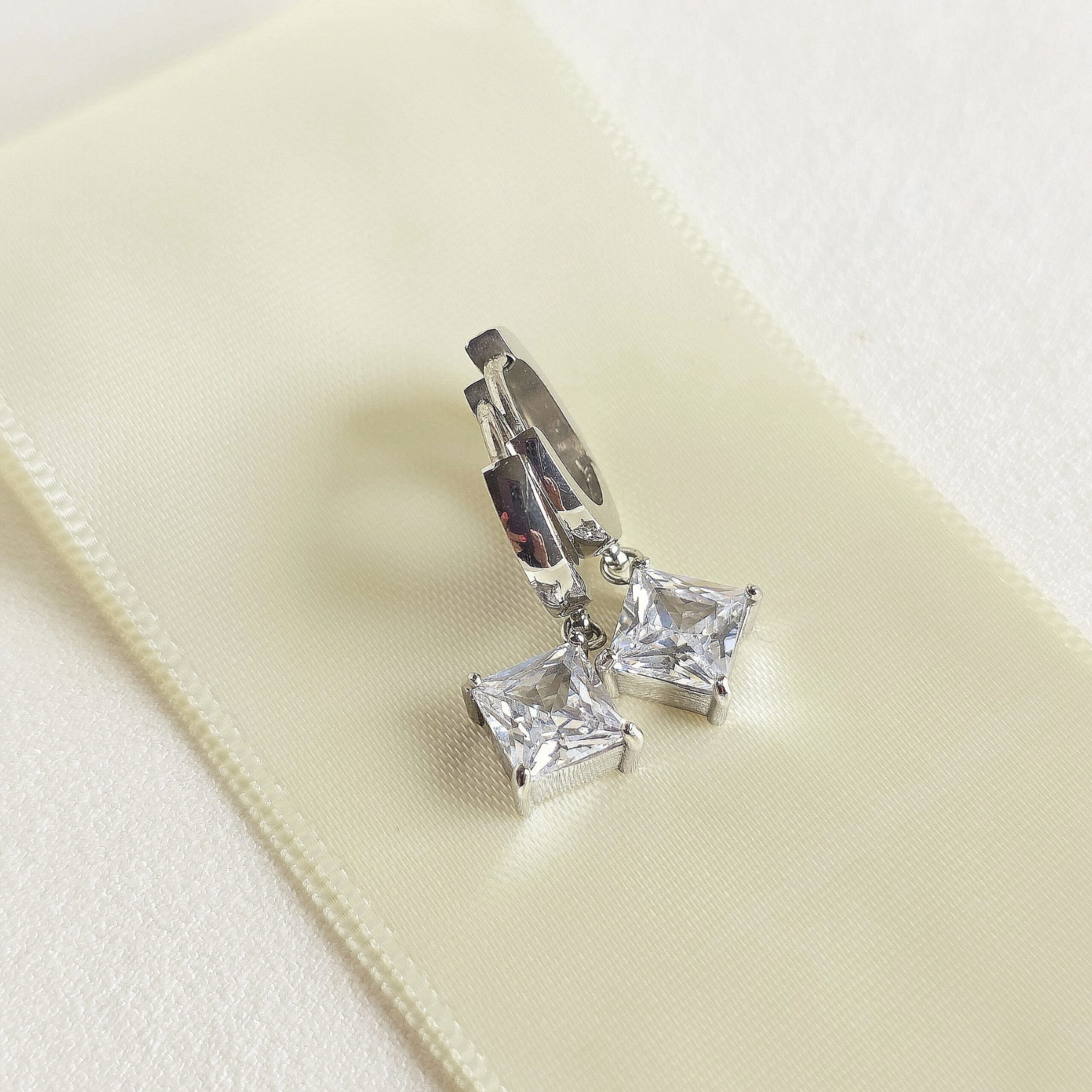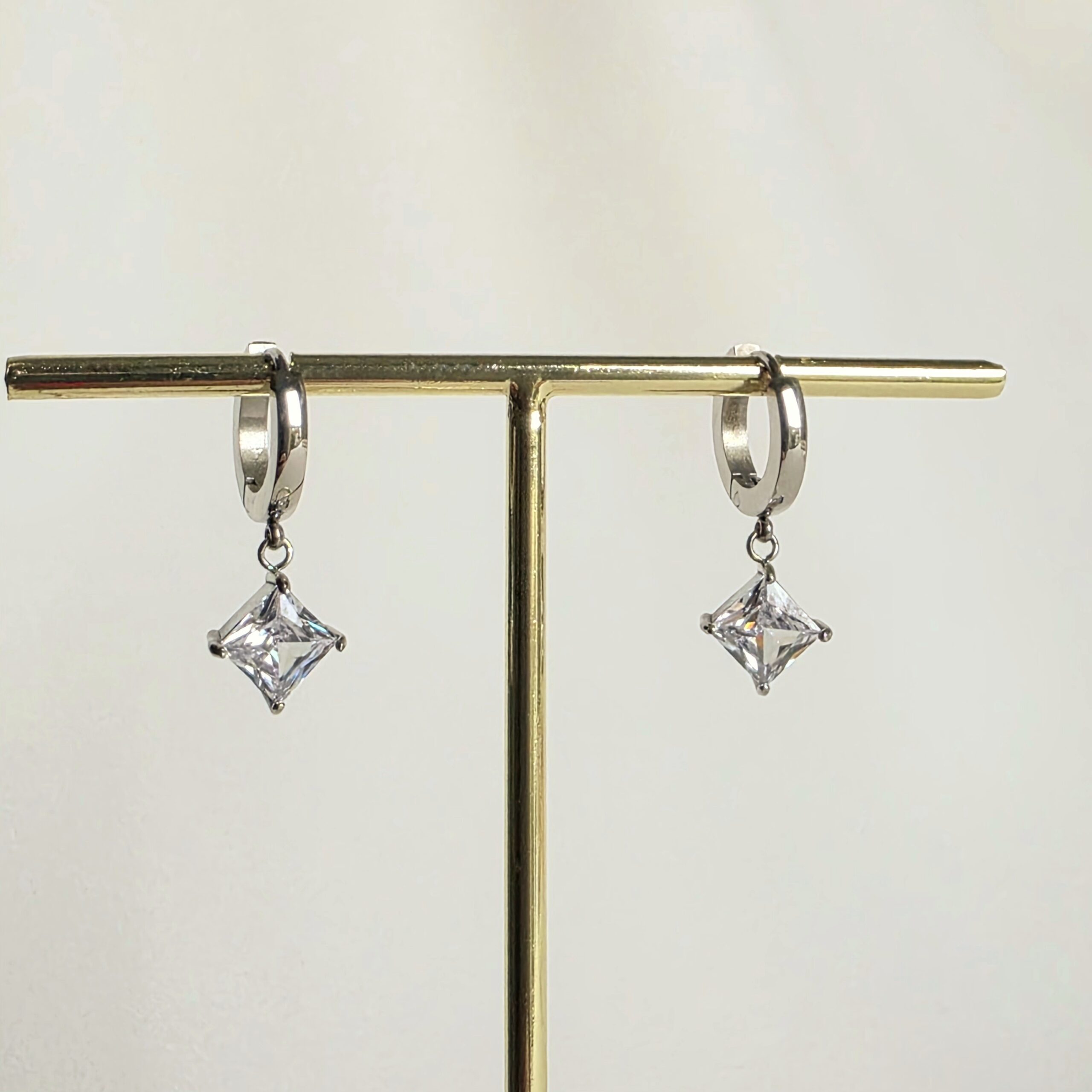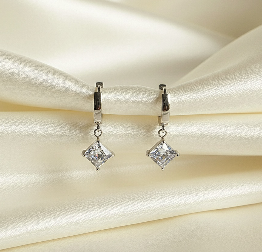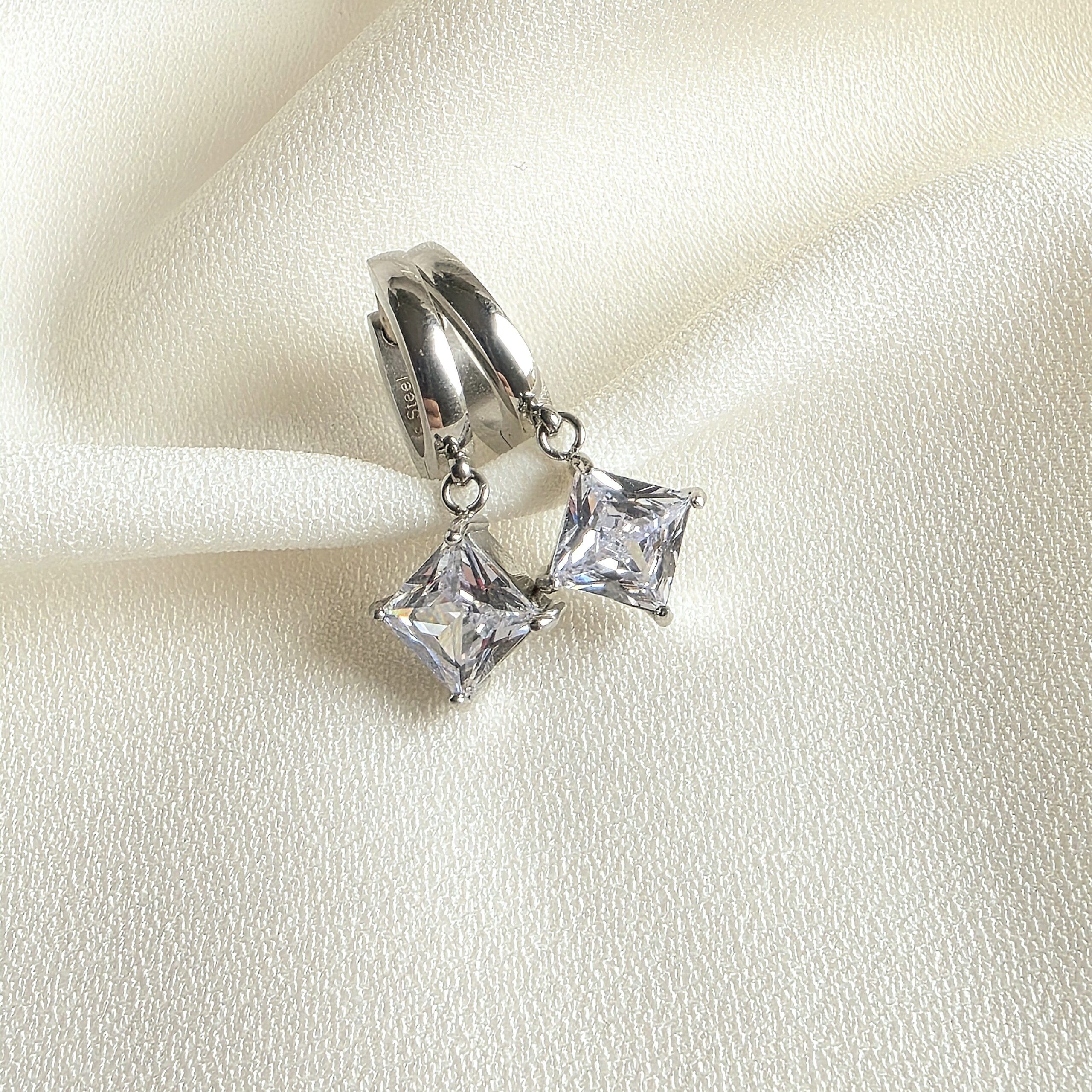 Boucles d’oreille en acier argenté avec cristal blanc