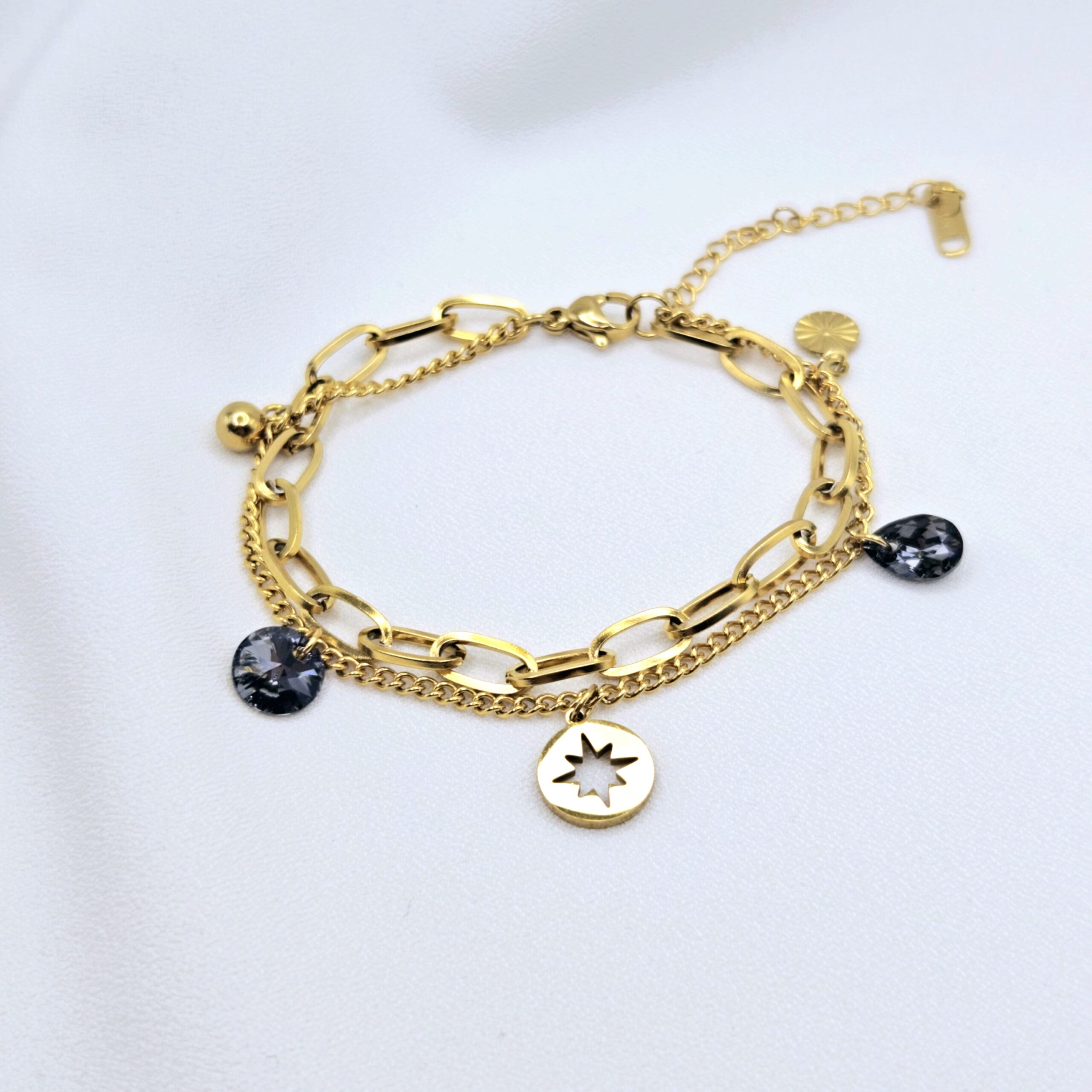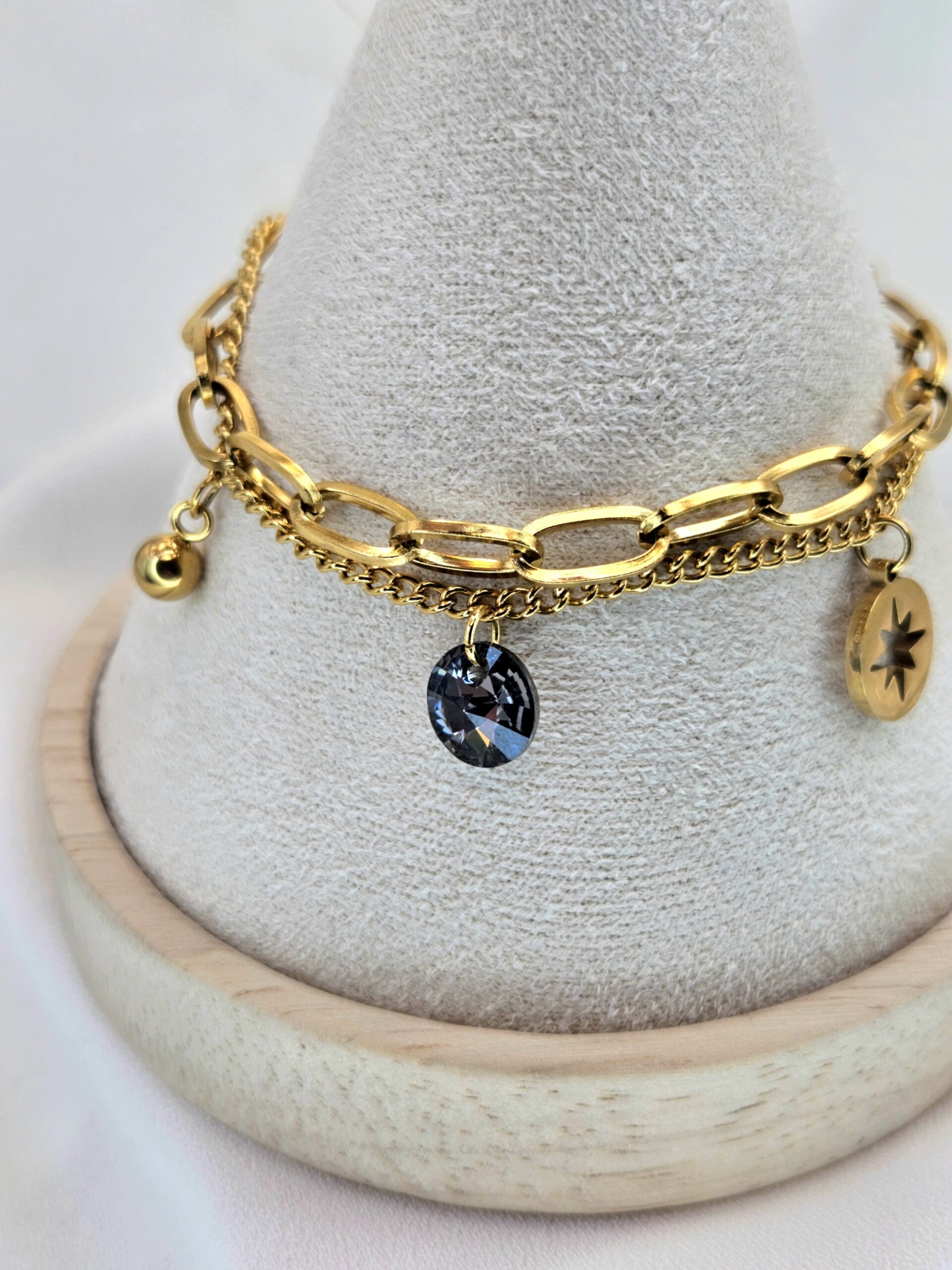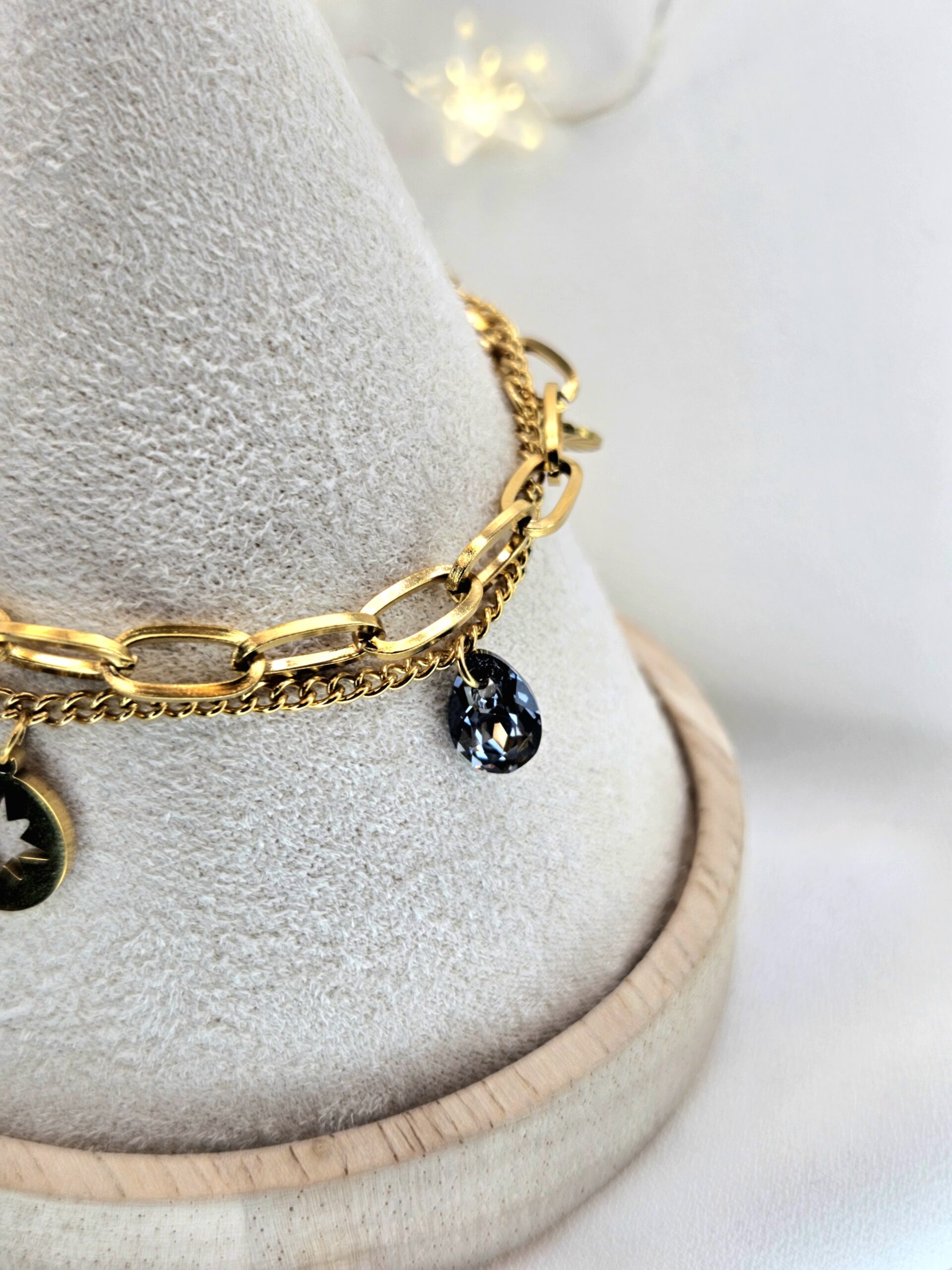 bracelet en acier inoxydable avec breloques en acier et cristaux