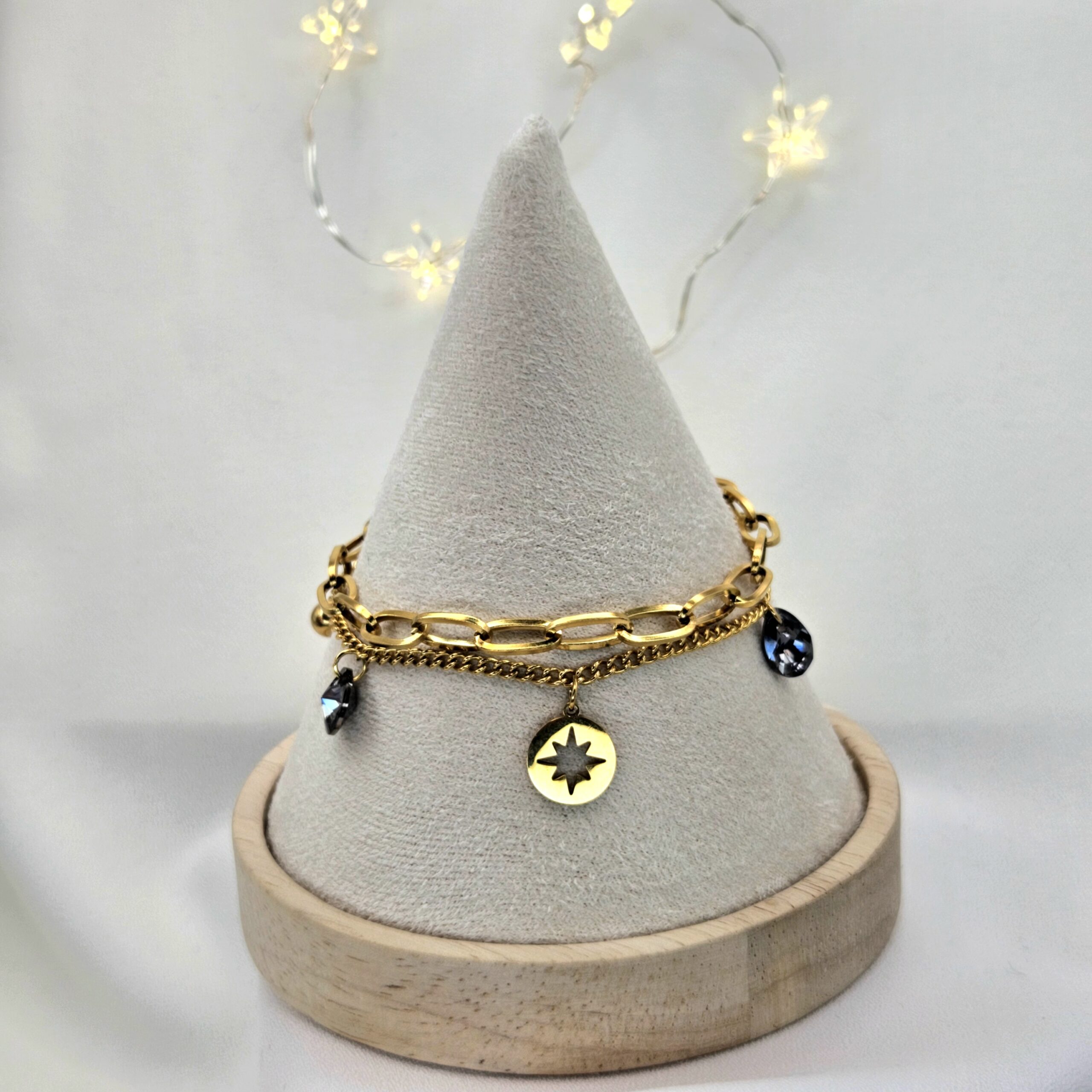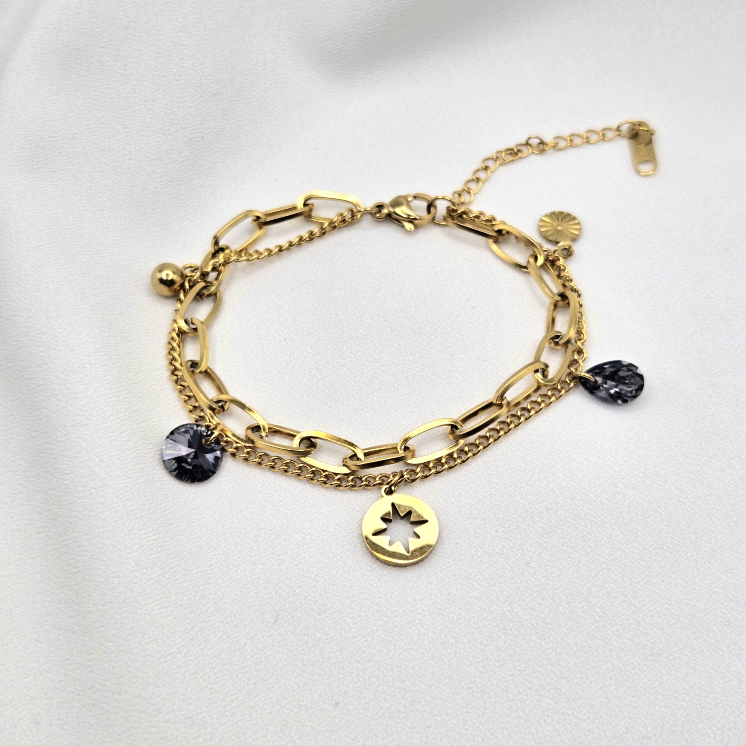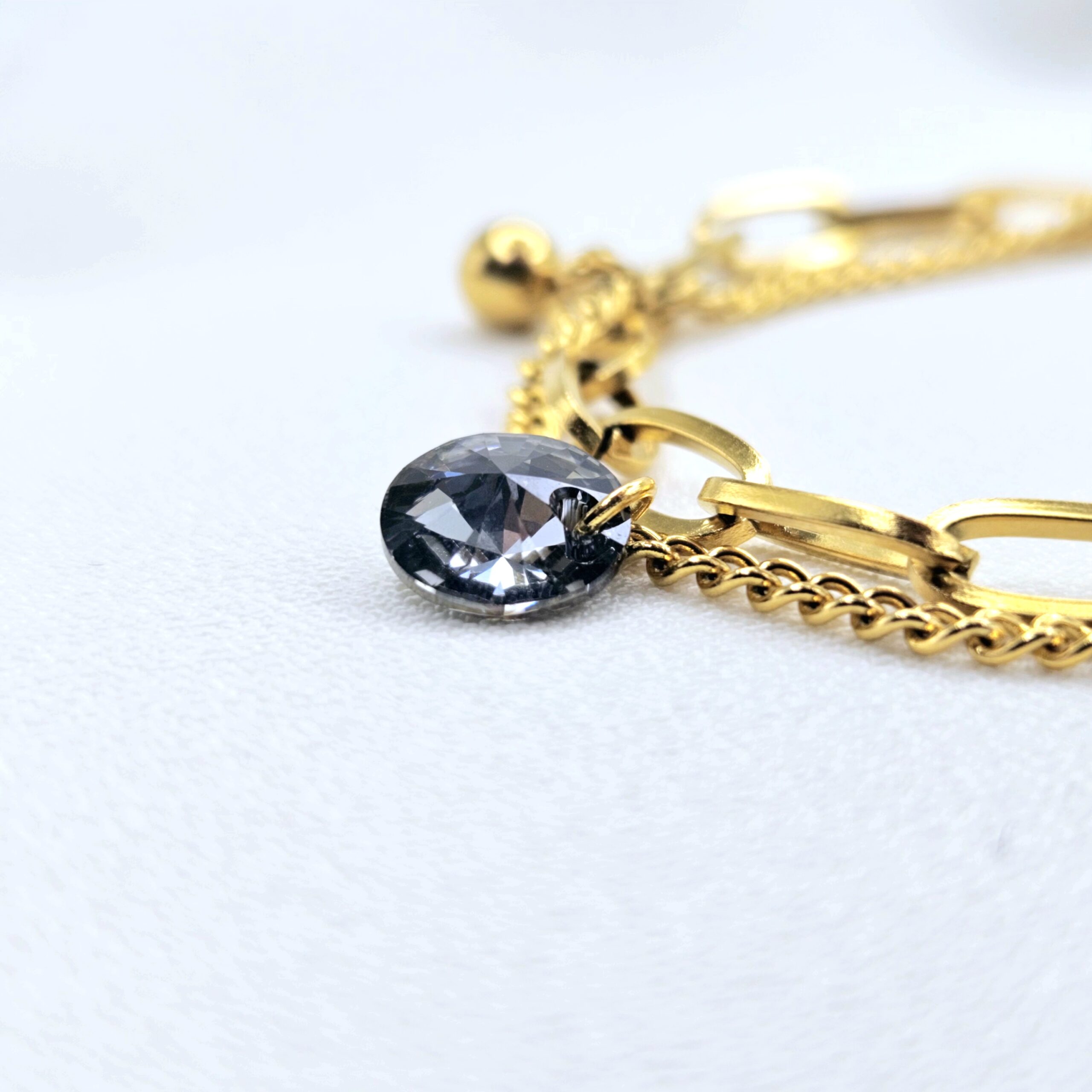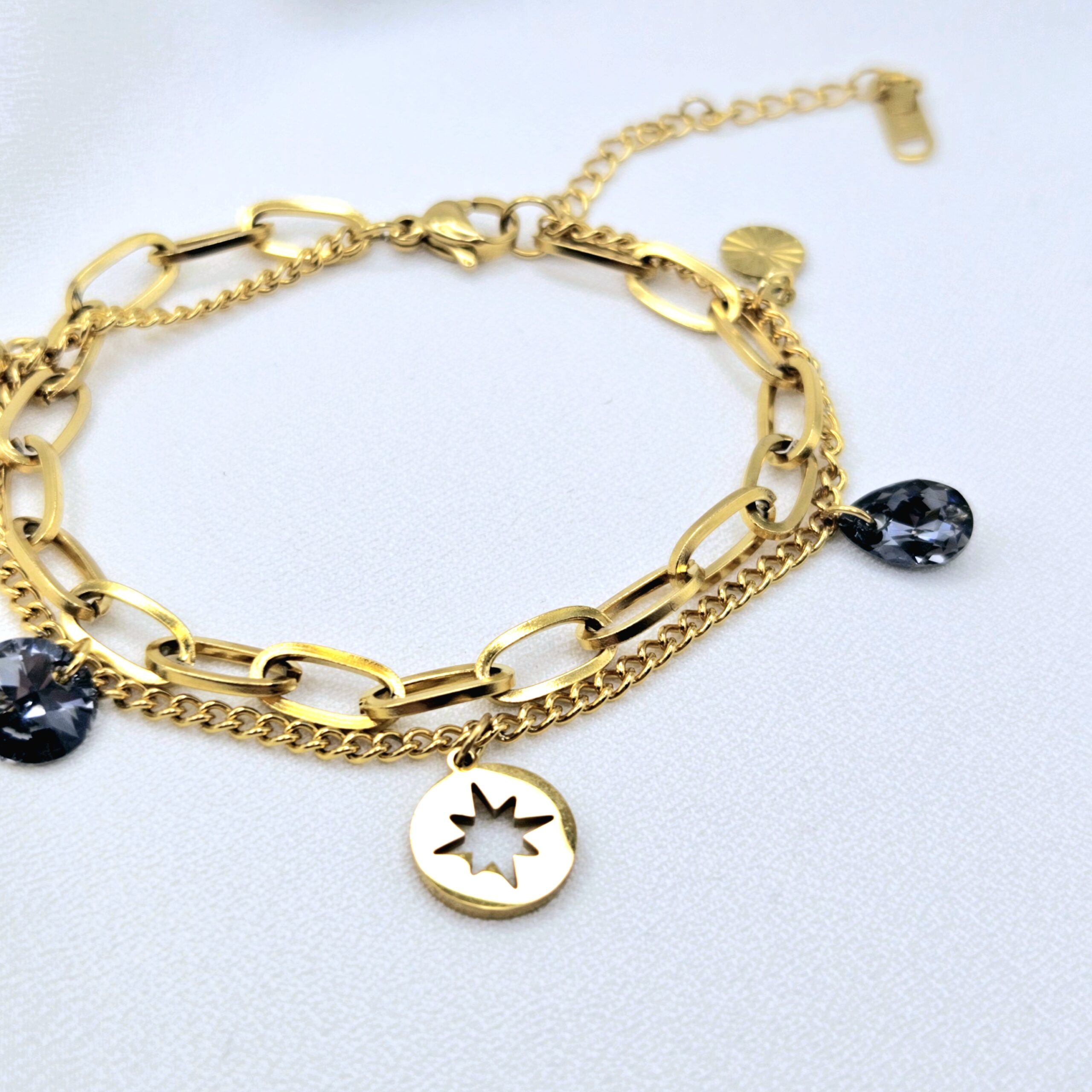 bracelet en acier inoxydable avec breloques en acier et cristaux