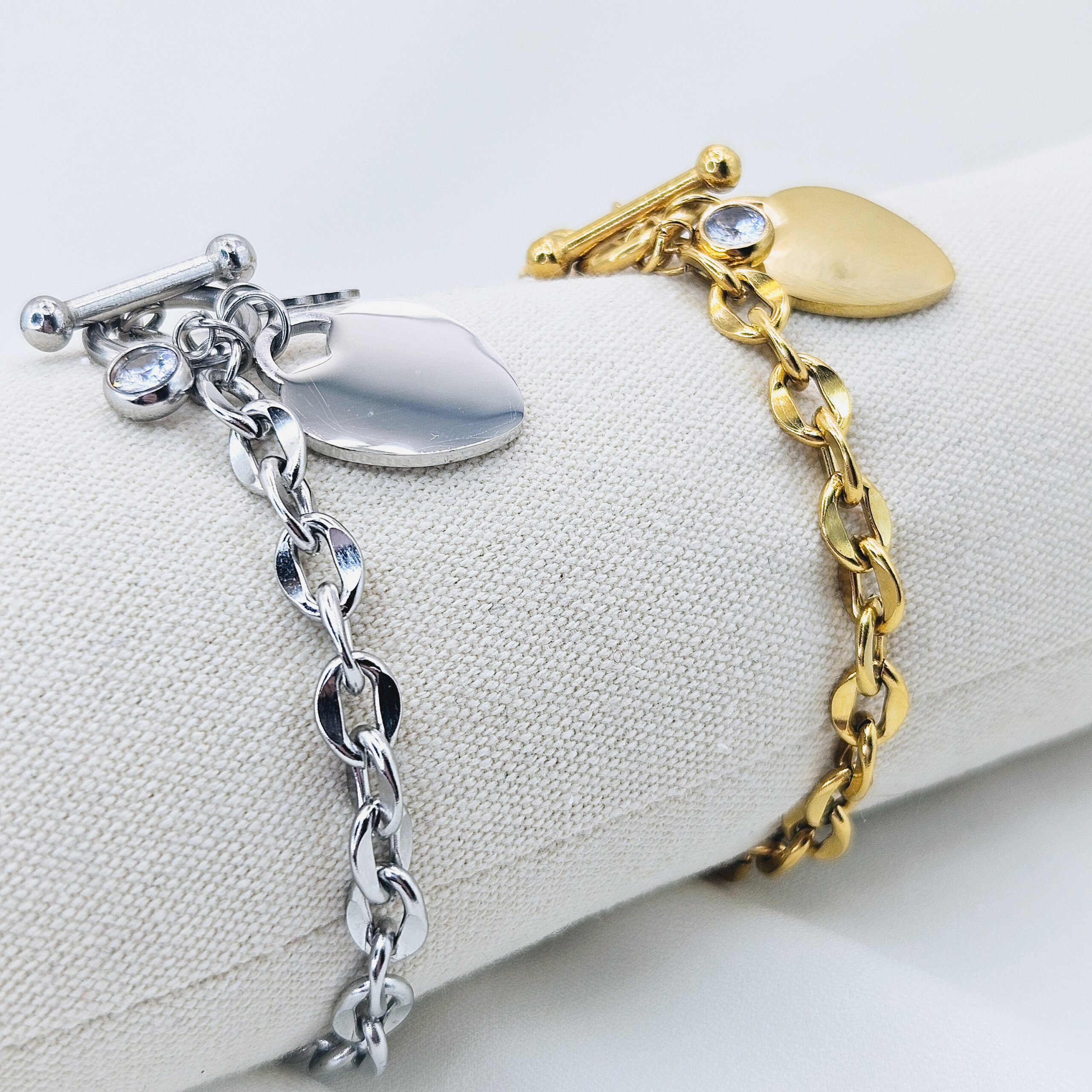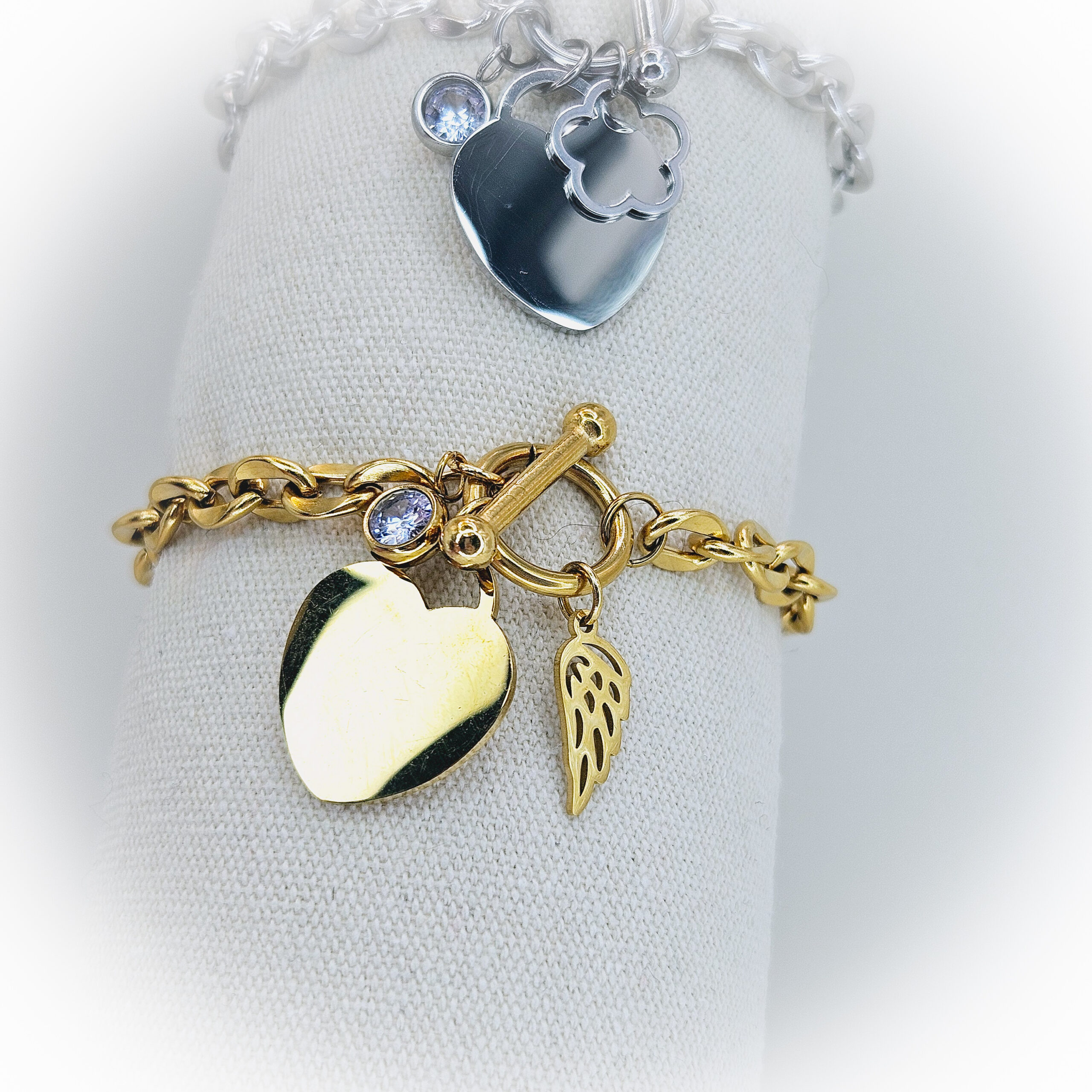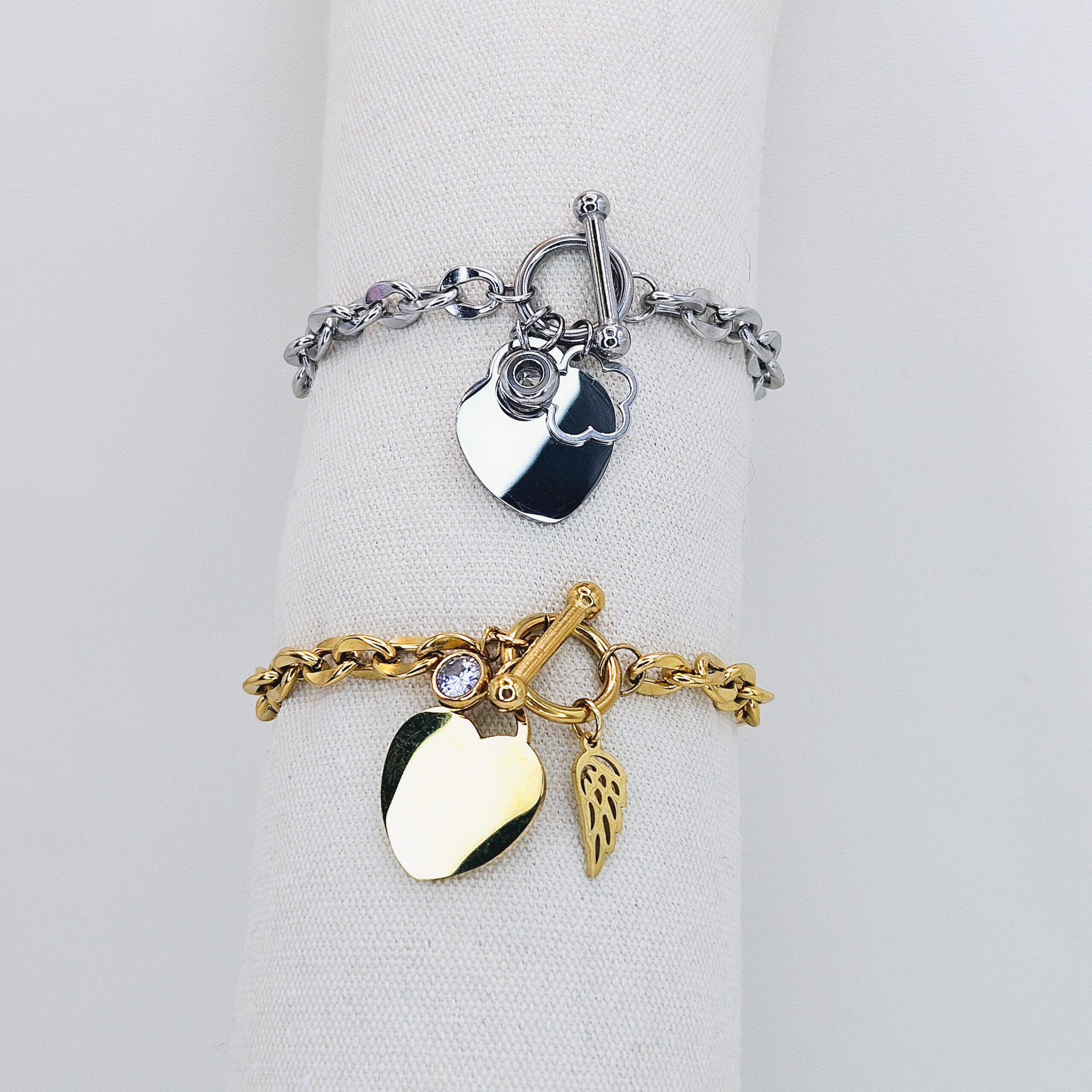 Bracelet en acier inoxydable doré ou argenté avec breloques