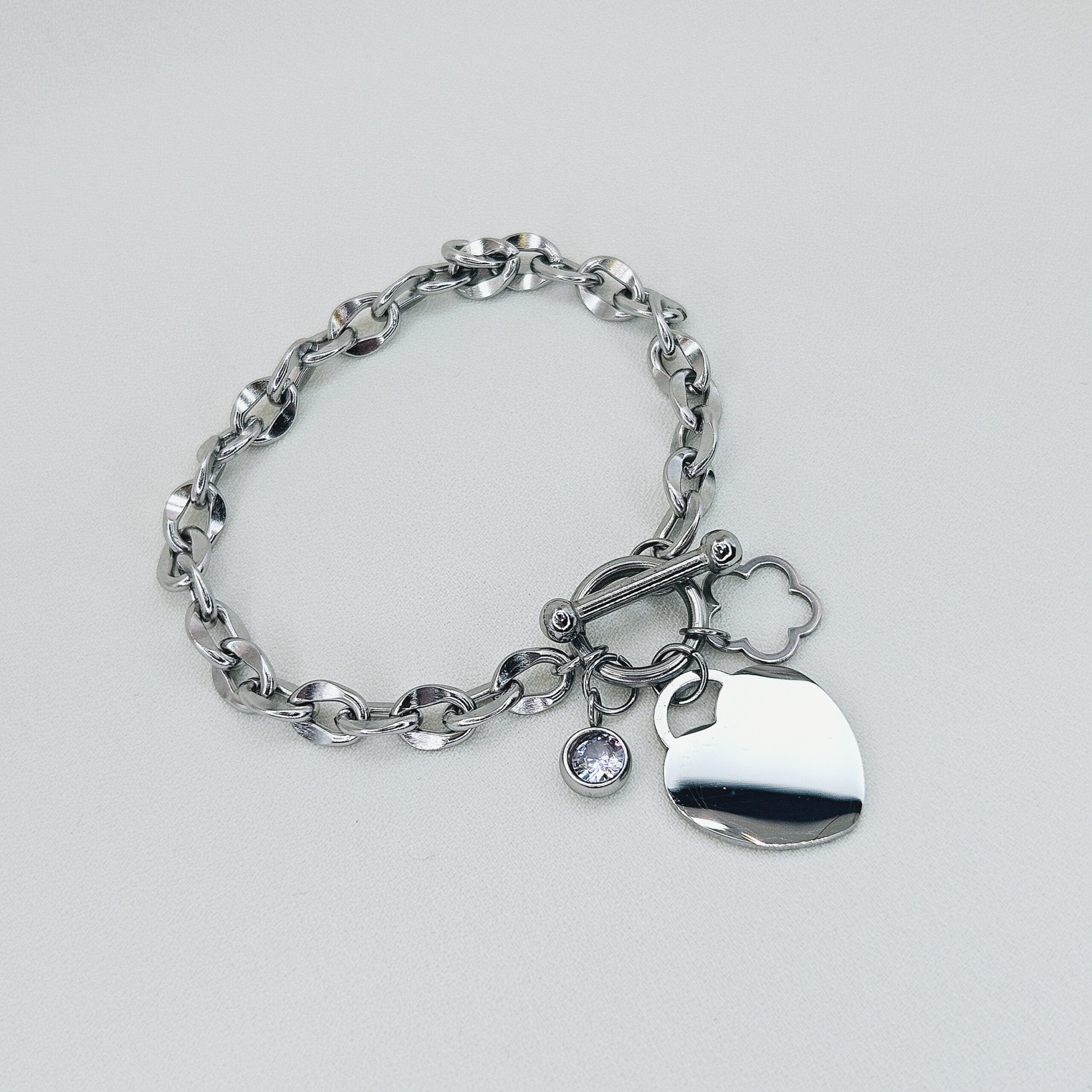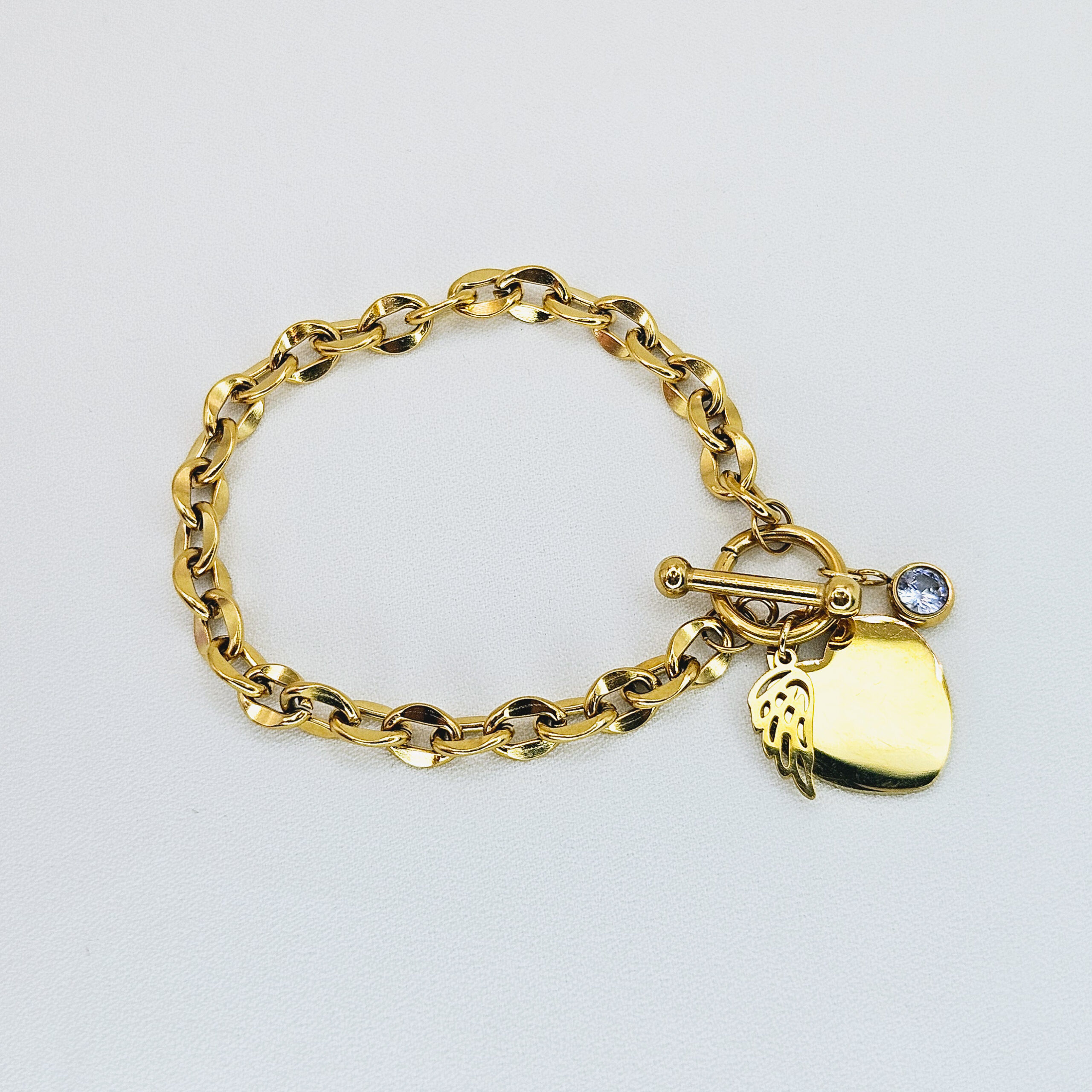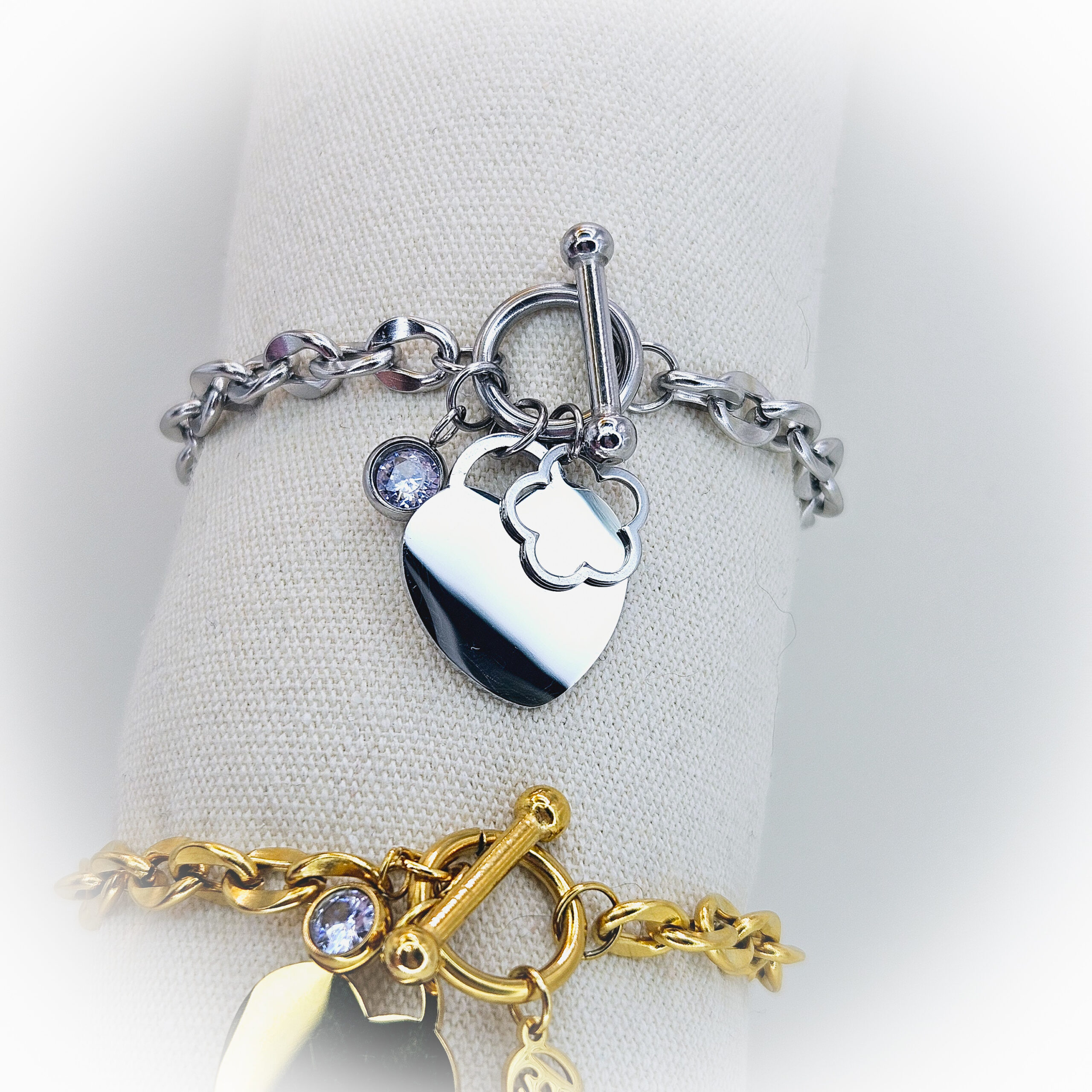 Bracelet en acier inoxydable doré ou argenté avec breloques