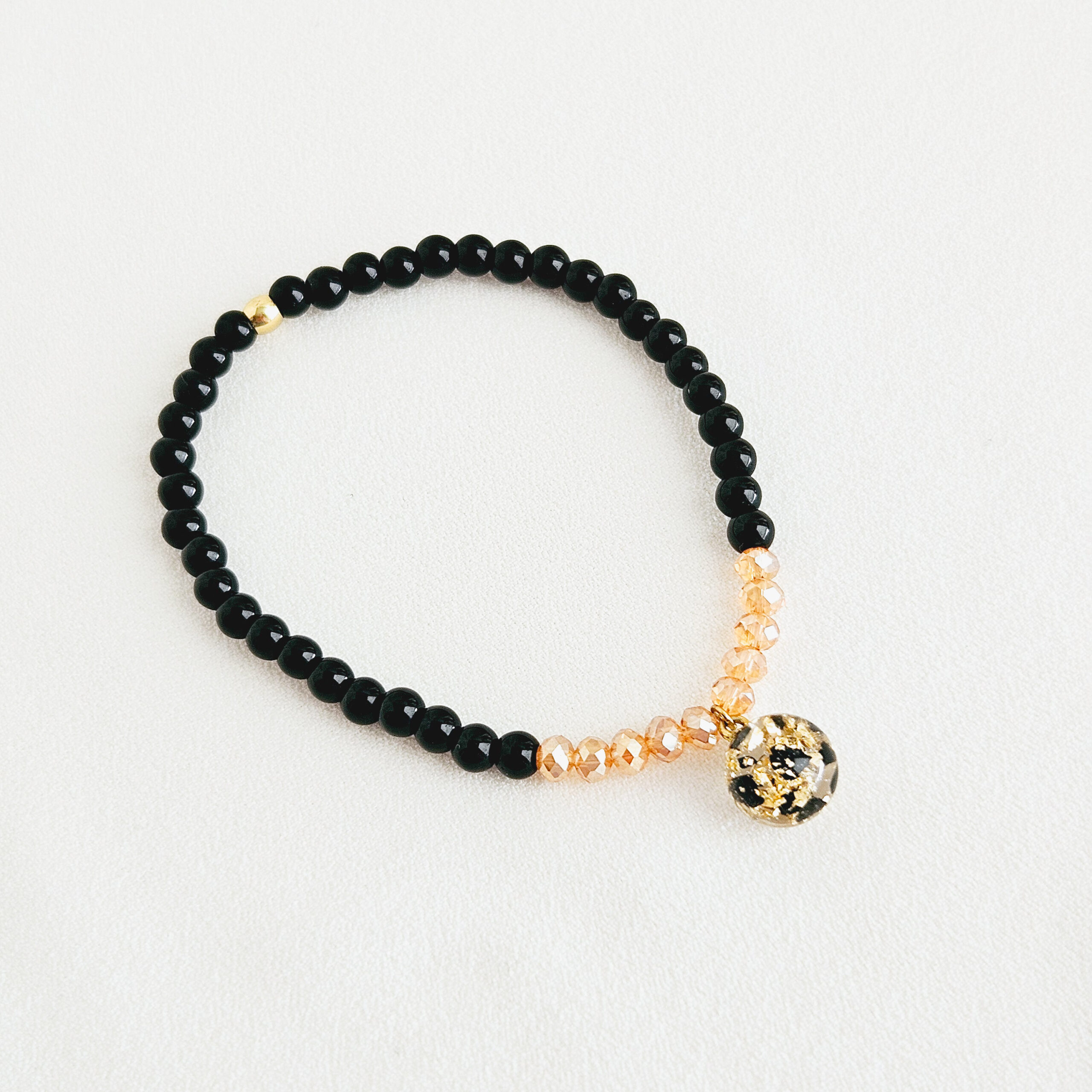Bracelet en élastique composé de perles en pierre naturelles (onyx noir , citrine )