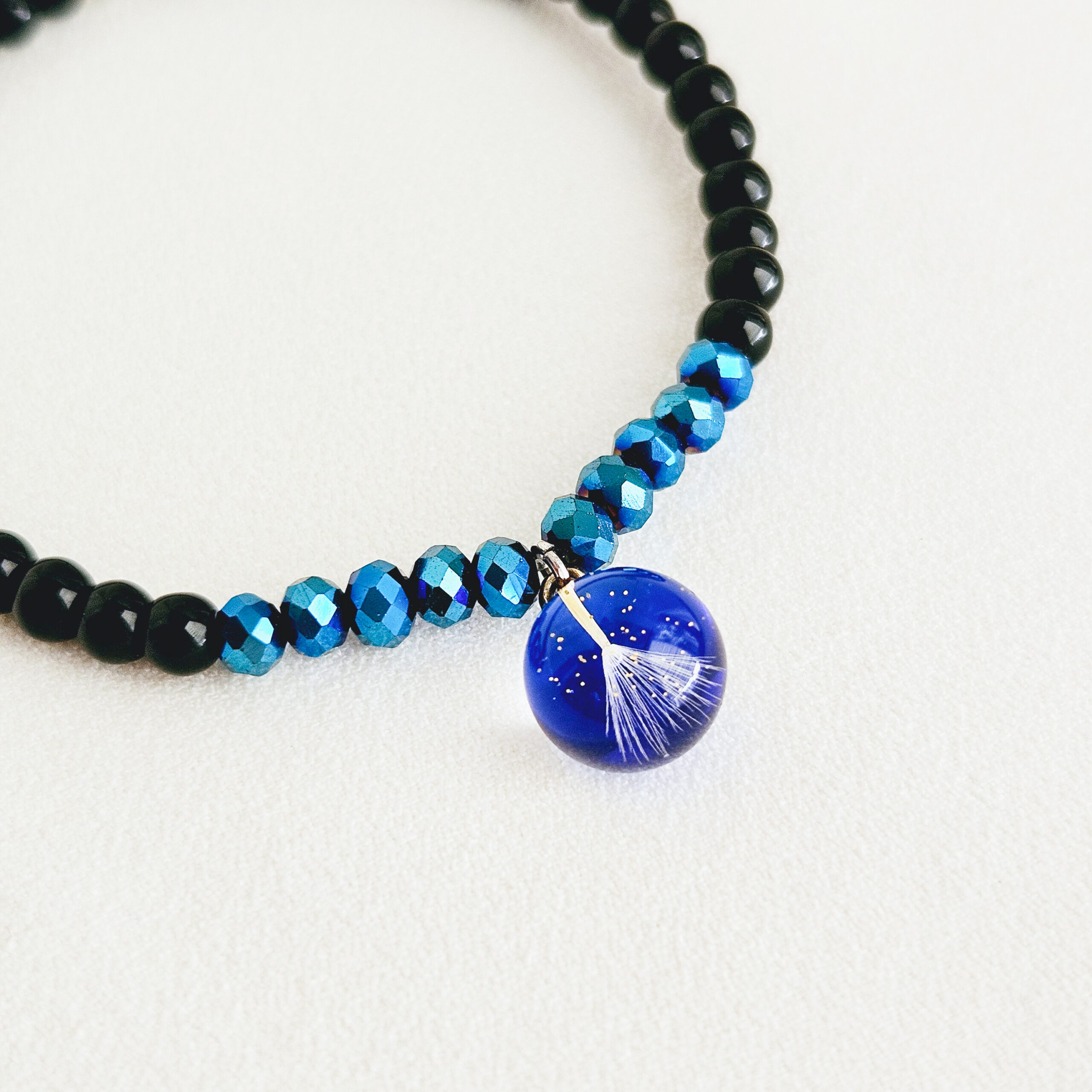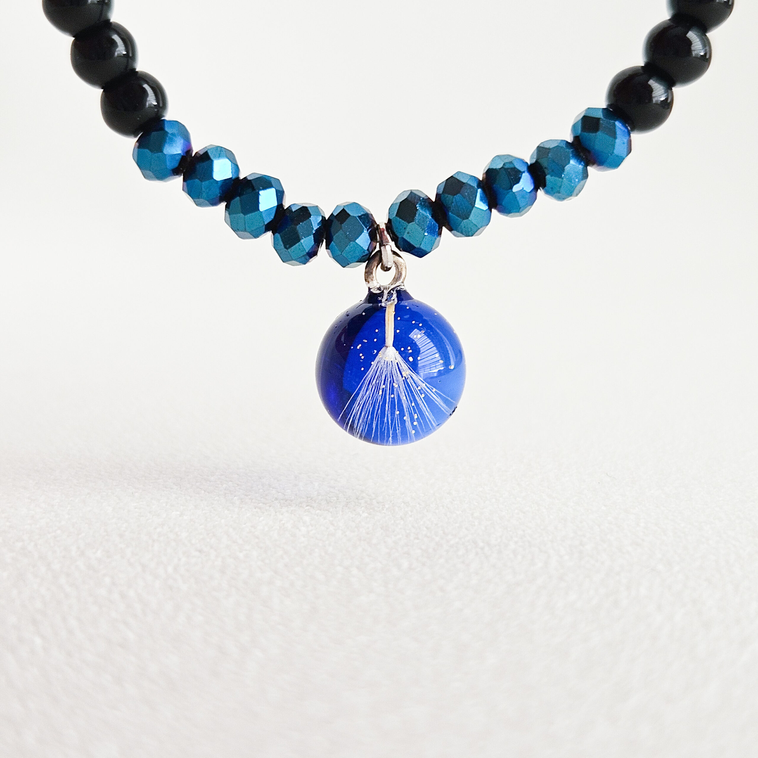 et d’une breloque en résine de haute qualité et pissenlits, paillettes dorées.