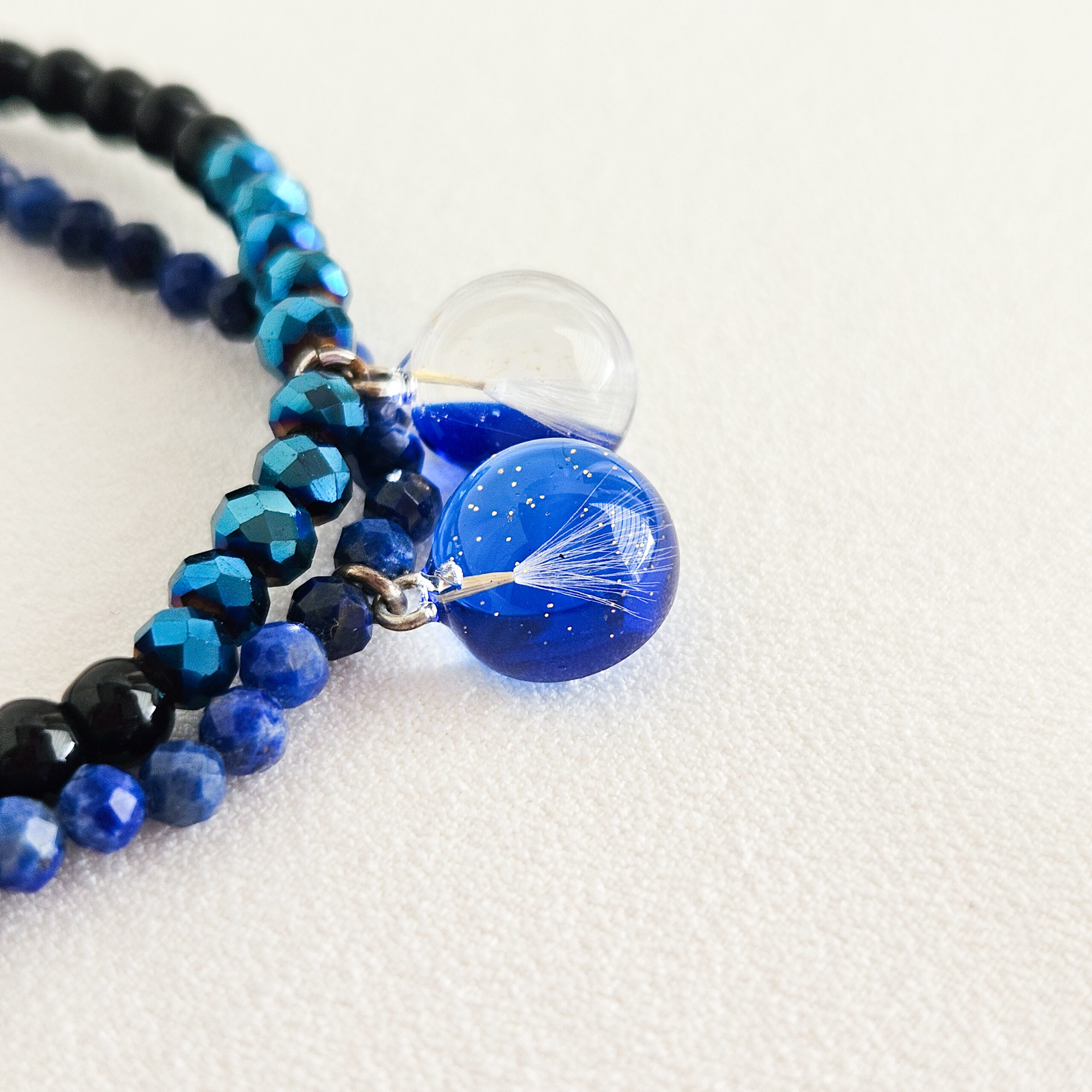 Découvrez ce élégant bracelet avec des pissenlits encapsulés dans une résine cristalline, il est raffiné et inspiré par la nature.